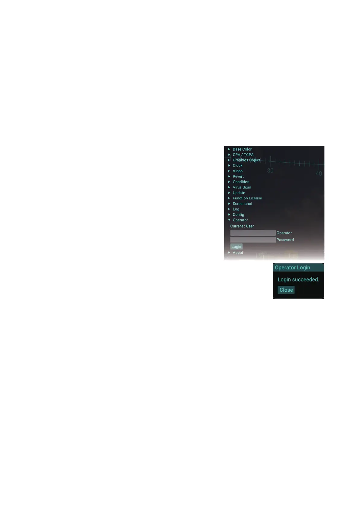 Note: Contact FURUNO for the operator name and password for login.