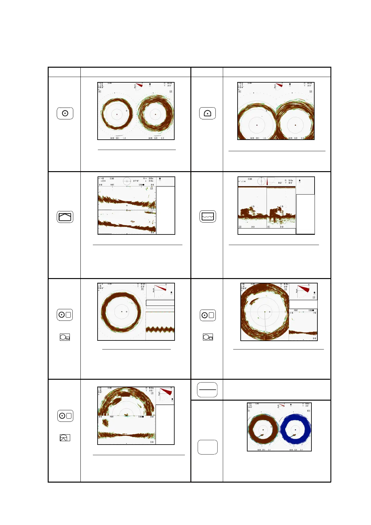 The following displays are available with the dual-frequency transducer.
