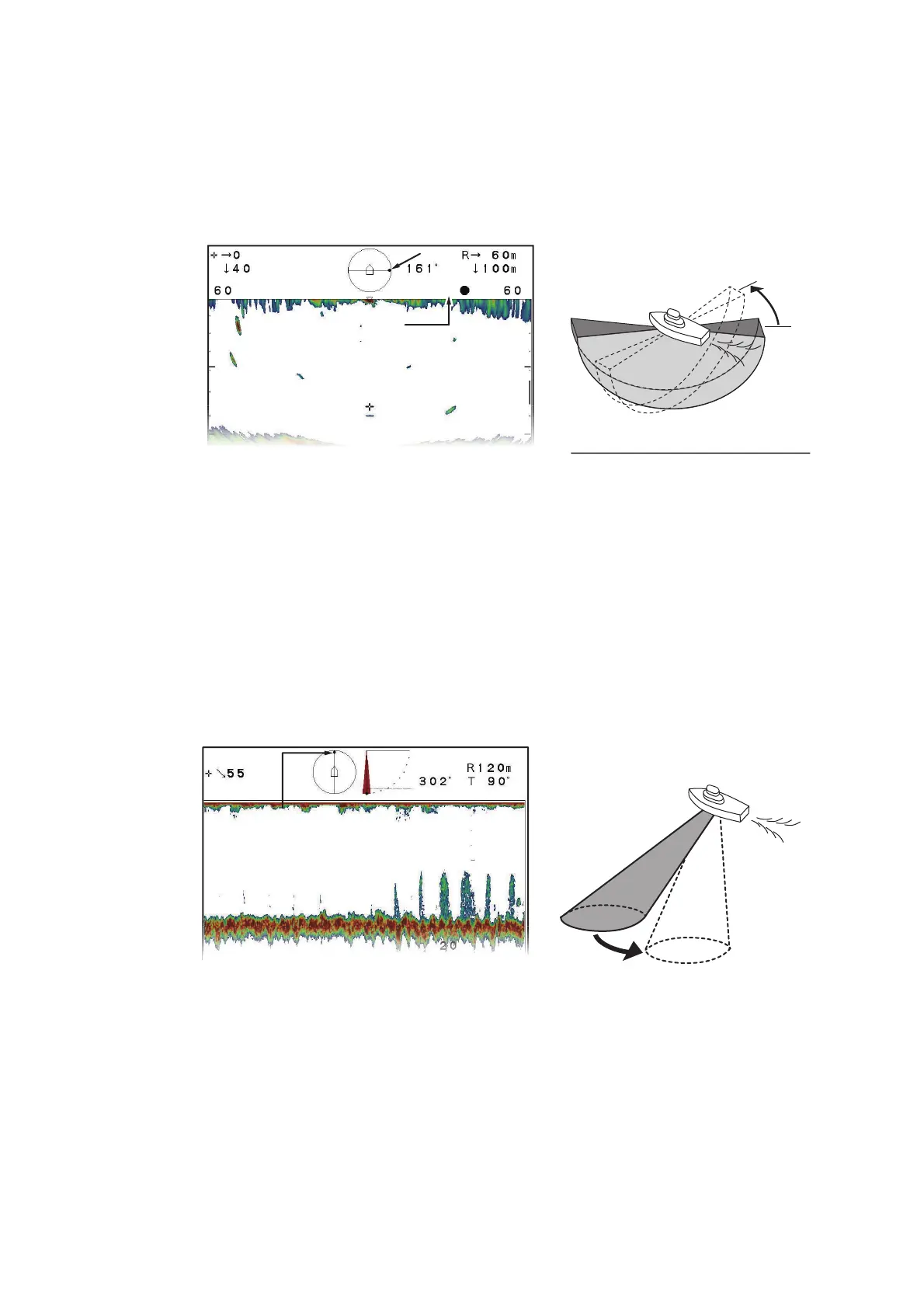 In Echo Sounder display mode, the scanning beam is sent in the direction set with the