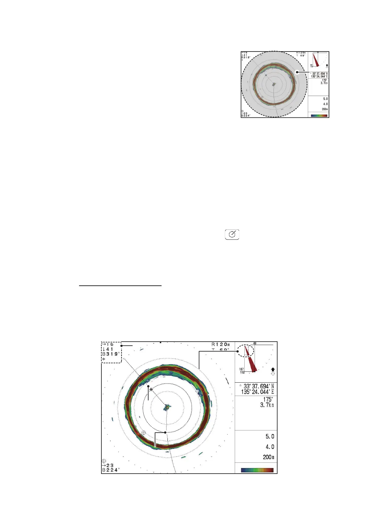 Depending on the display mode in use, the range mark is displayed in a different man-
