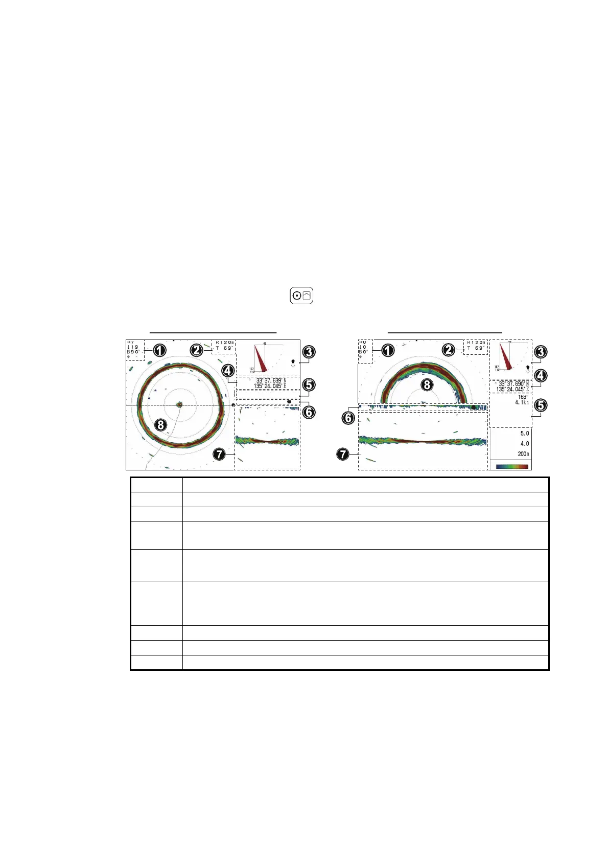 1 Indications for cursor position. (Horizontal distance, depth and bearing.)