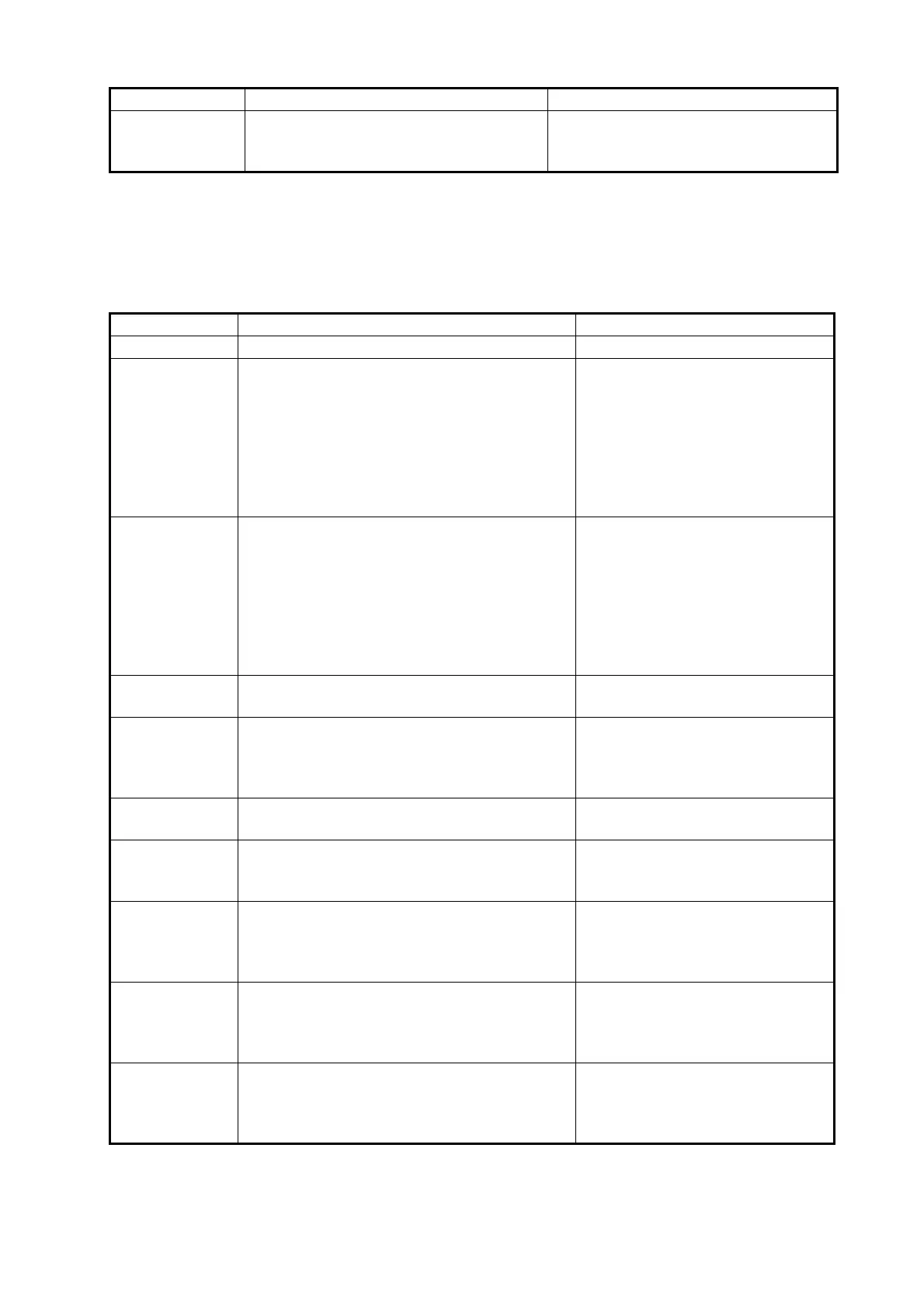 Menu item Description Settings/Ranges