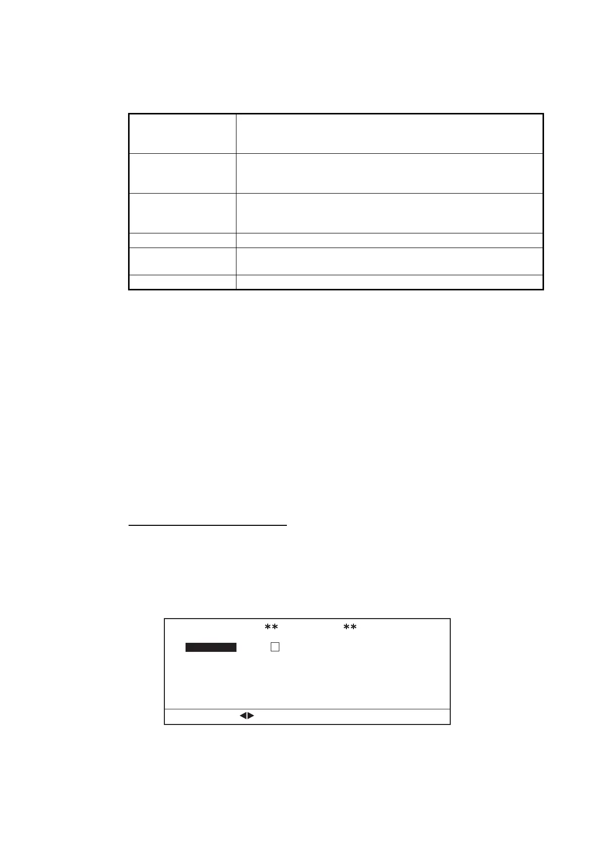 and the table below, press or to move the cursor to the setting you wish to