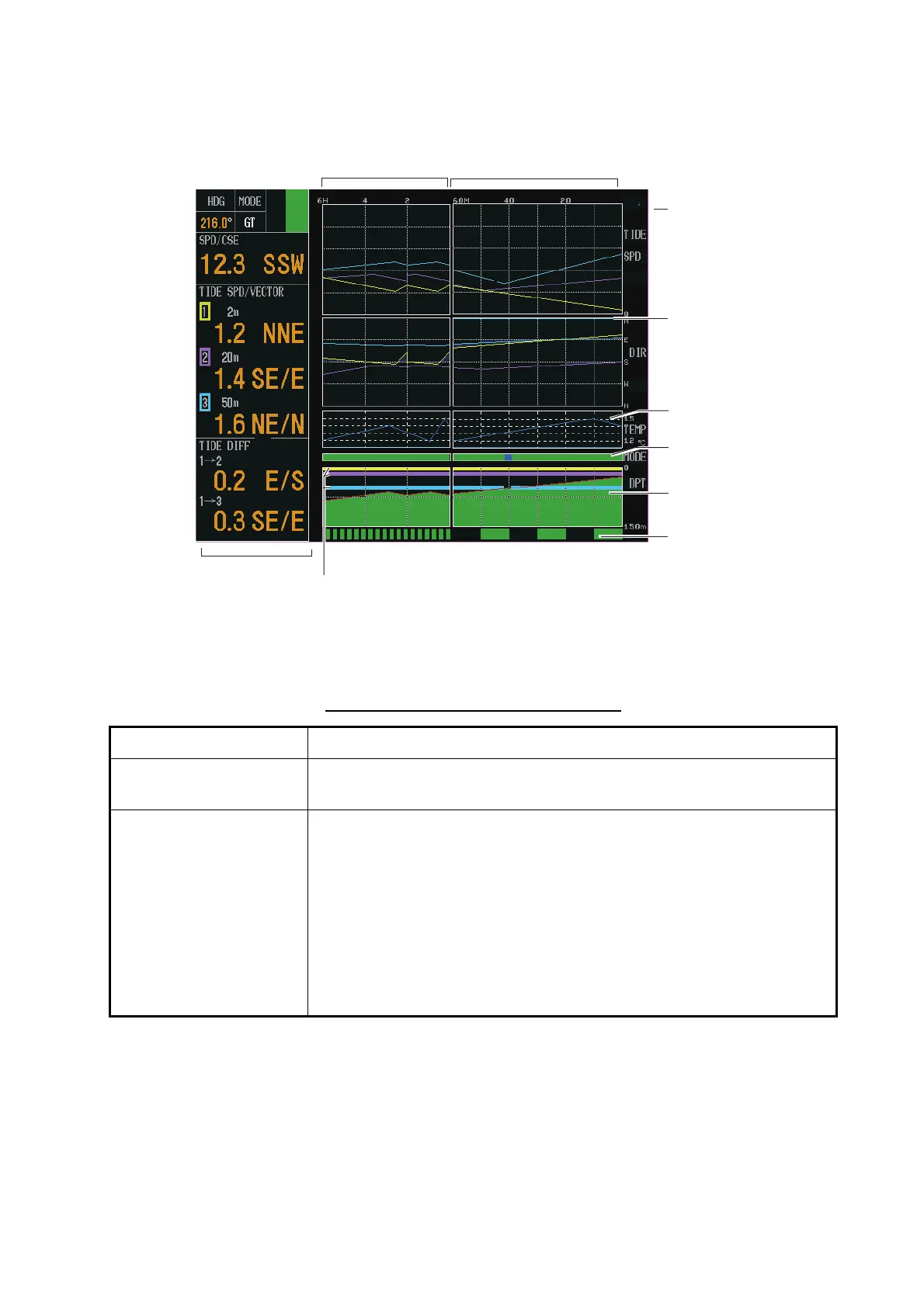 For the tide graph, graph lines are displayed in colors: Layer 1, Yellow;
