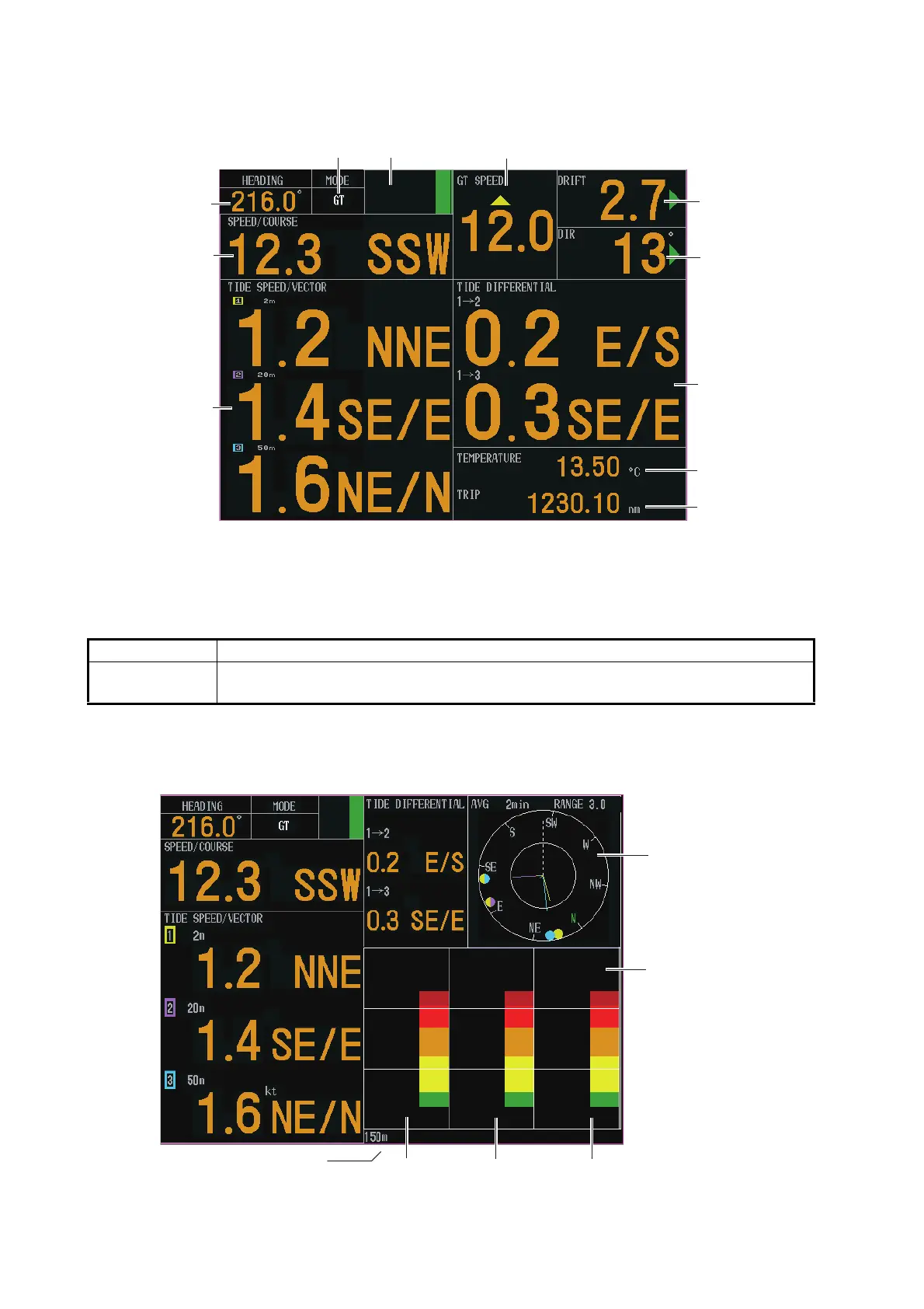 Ship's Speed displays. Refer to "Tide Vector Display" and "Ship's Speed Display" for