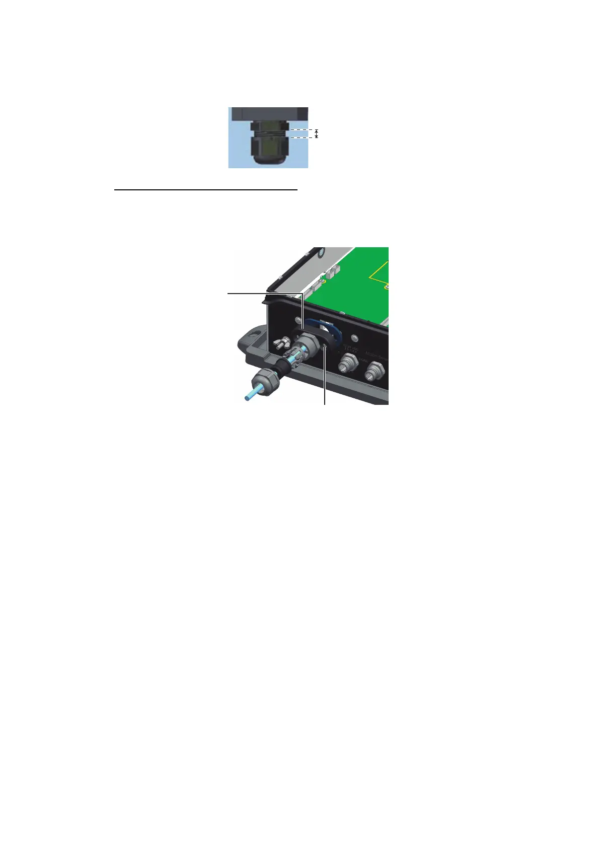 Loosen the two screws on the gland to access the cable’s connector. A lock washer