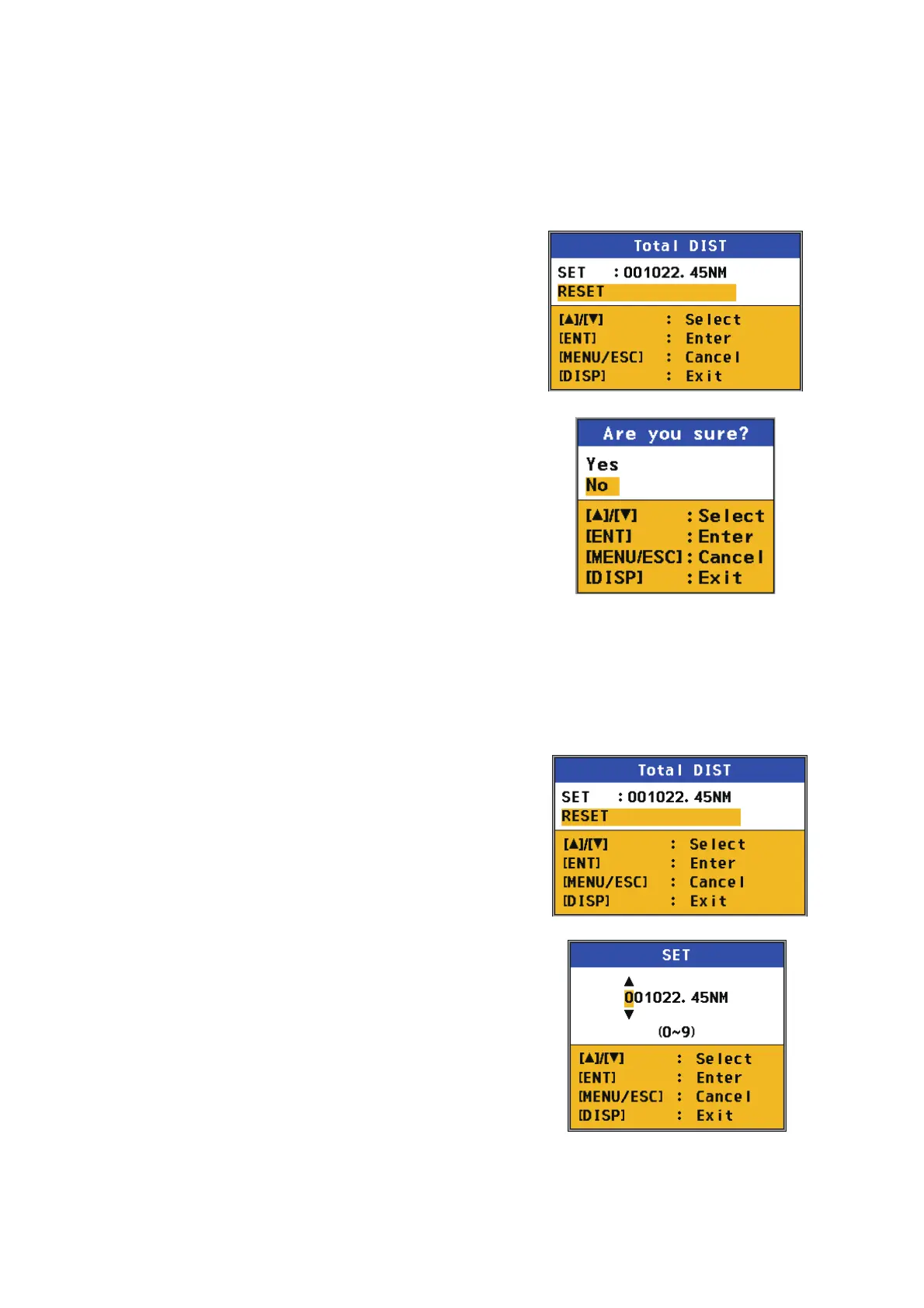 4. [Yes] を選び、[ENT] キーを押します。
