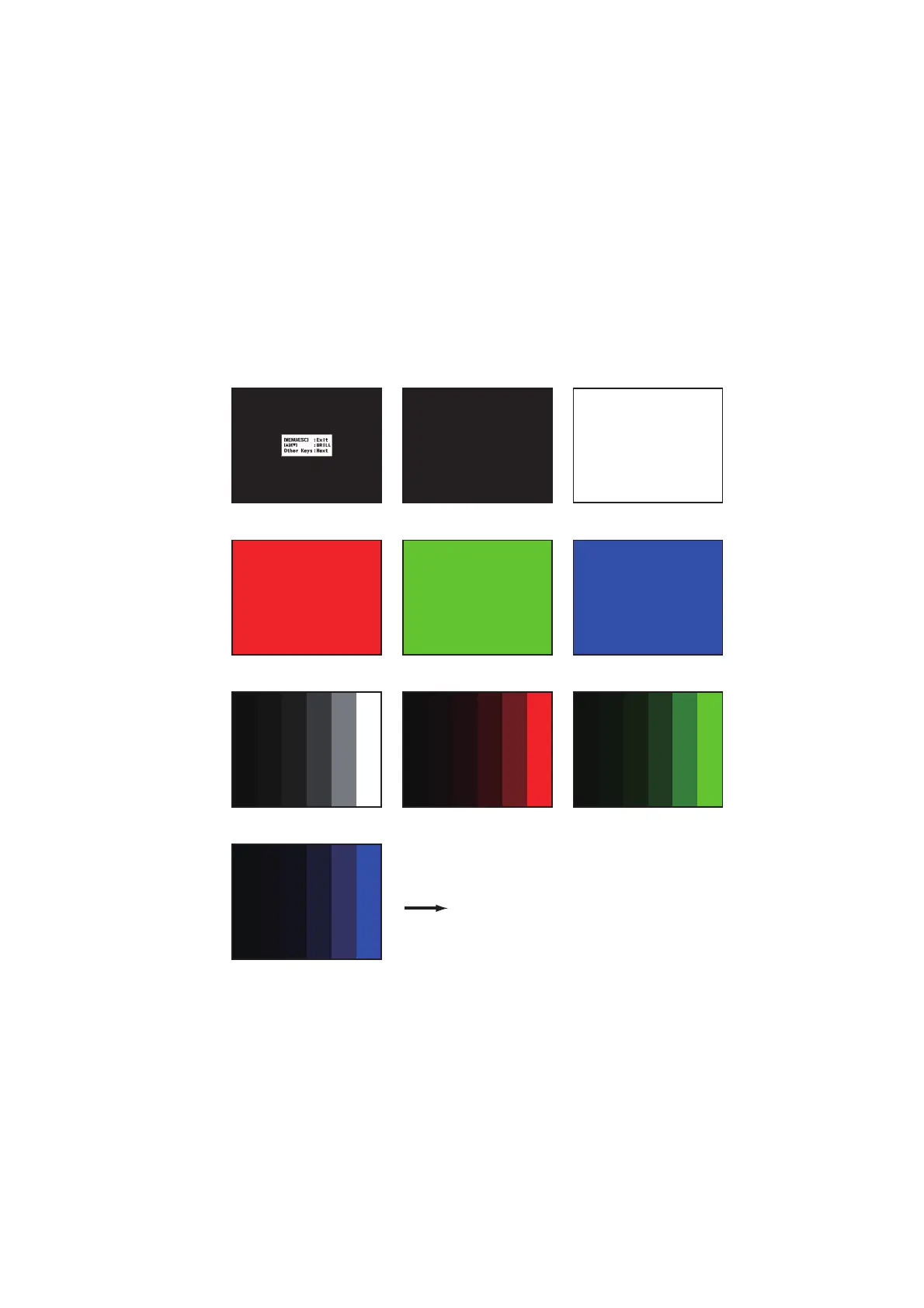 4. [MENU/ESC]、、 以外の任意のキーを押し、LCD カラーテストを行い