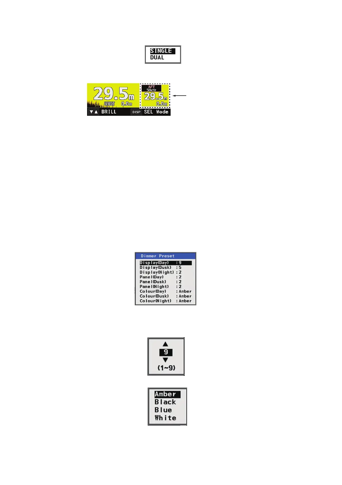 サービスメニューで、[Dimmer Mode] から ”ECDIS” を選択している場合は、メニューの [Day/