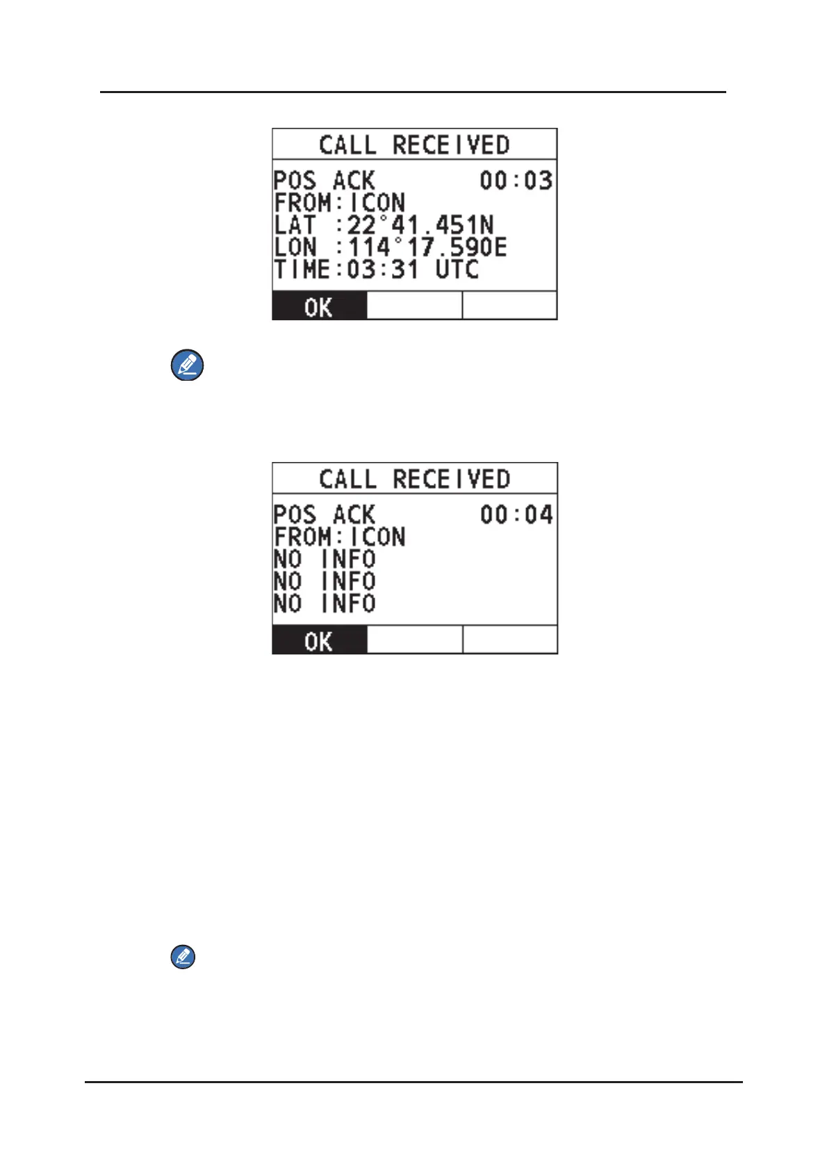Step 3 When the radio receives an acknowledgement, the radio screen shows