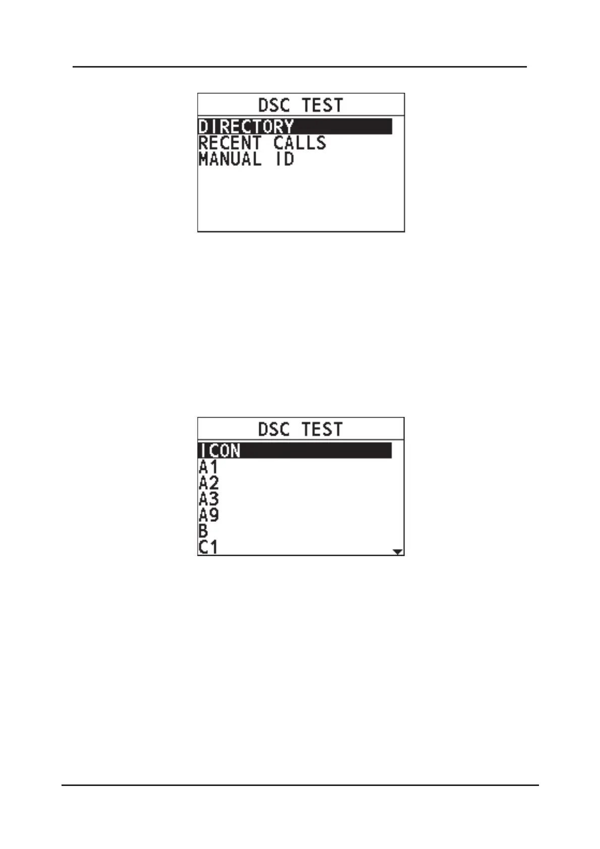 Step 1 On the "DSC TEST" page, select "DIRECTORY".
