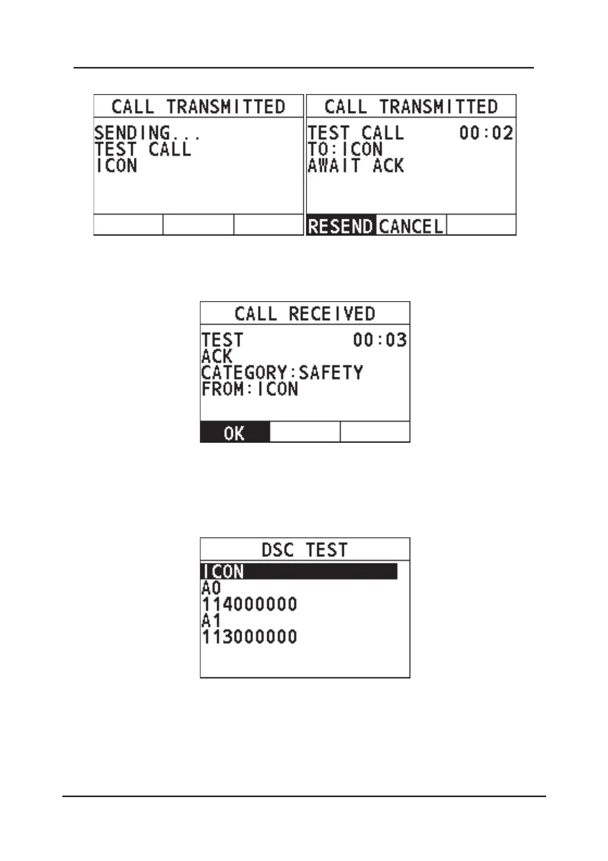 Step 3 Press the Menu/DSC control to send the DSC test call.