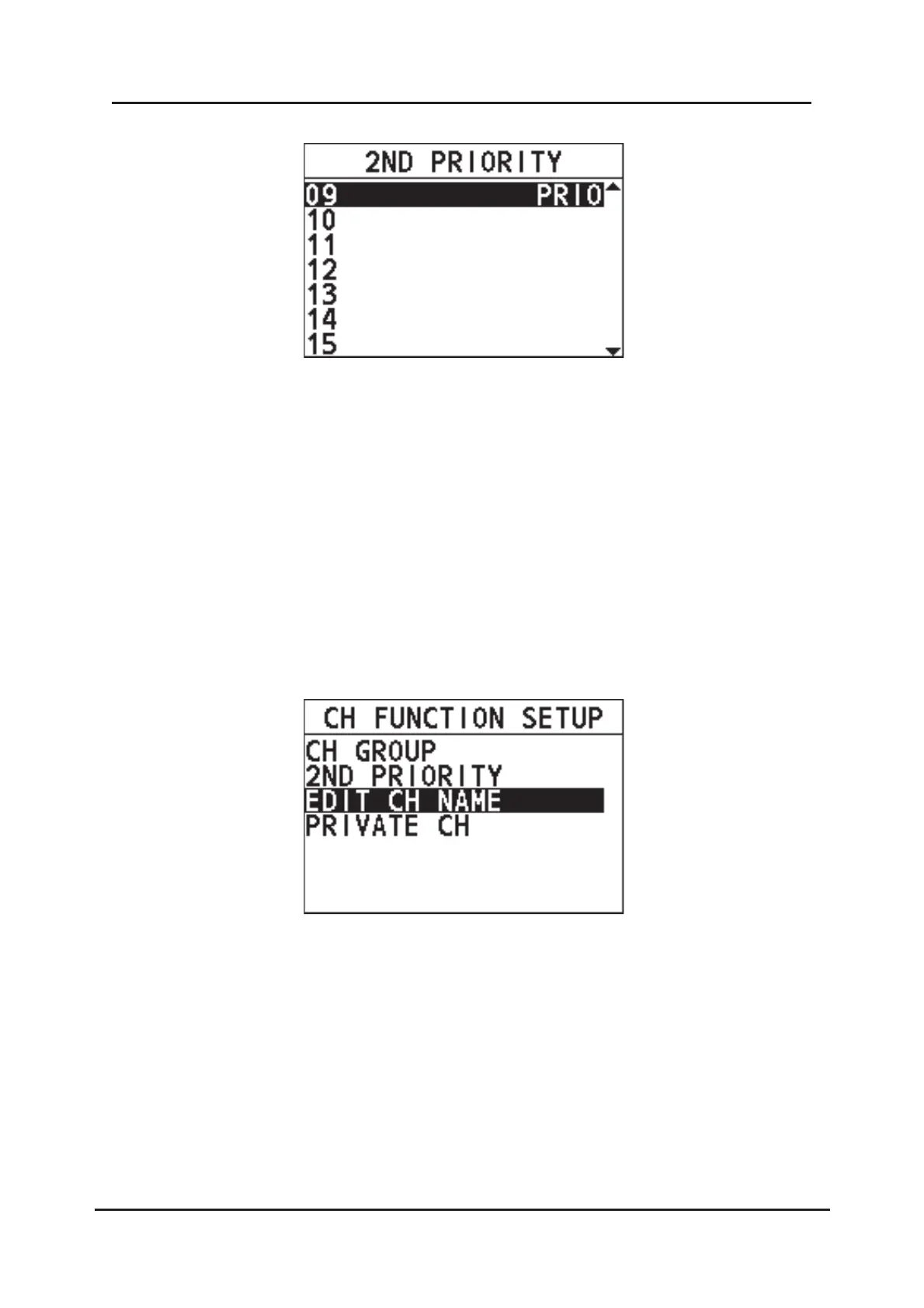 Step 4 Press the Menu/DSC control to set the channel to the second priority
