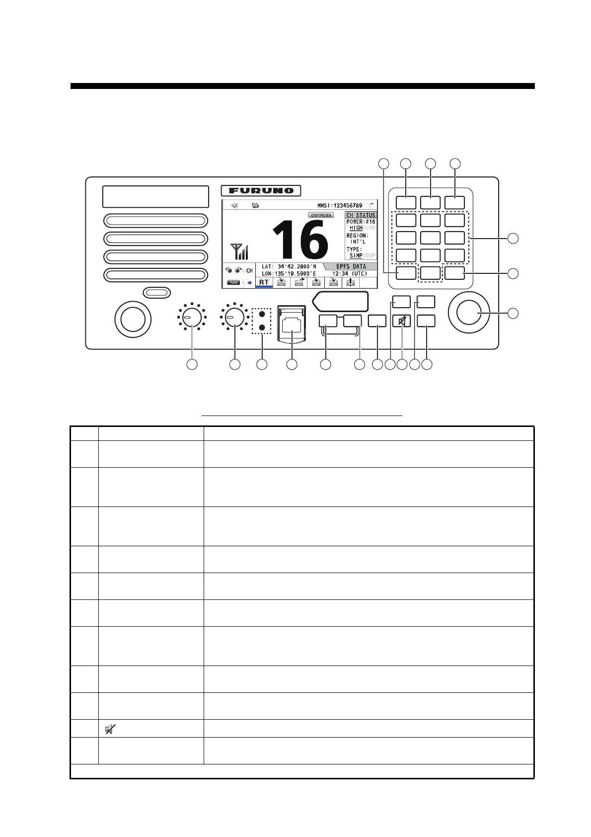 4 DISTRESS key Press and hold down the key four seconds to transmit the distress