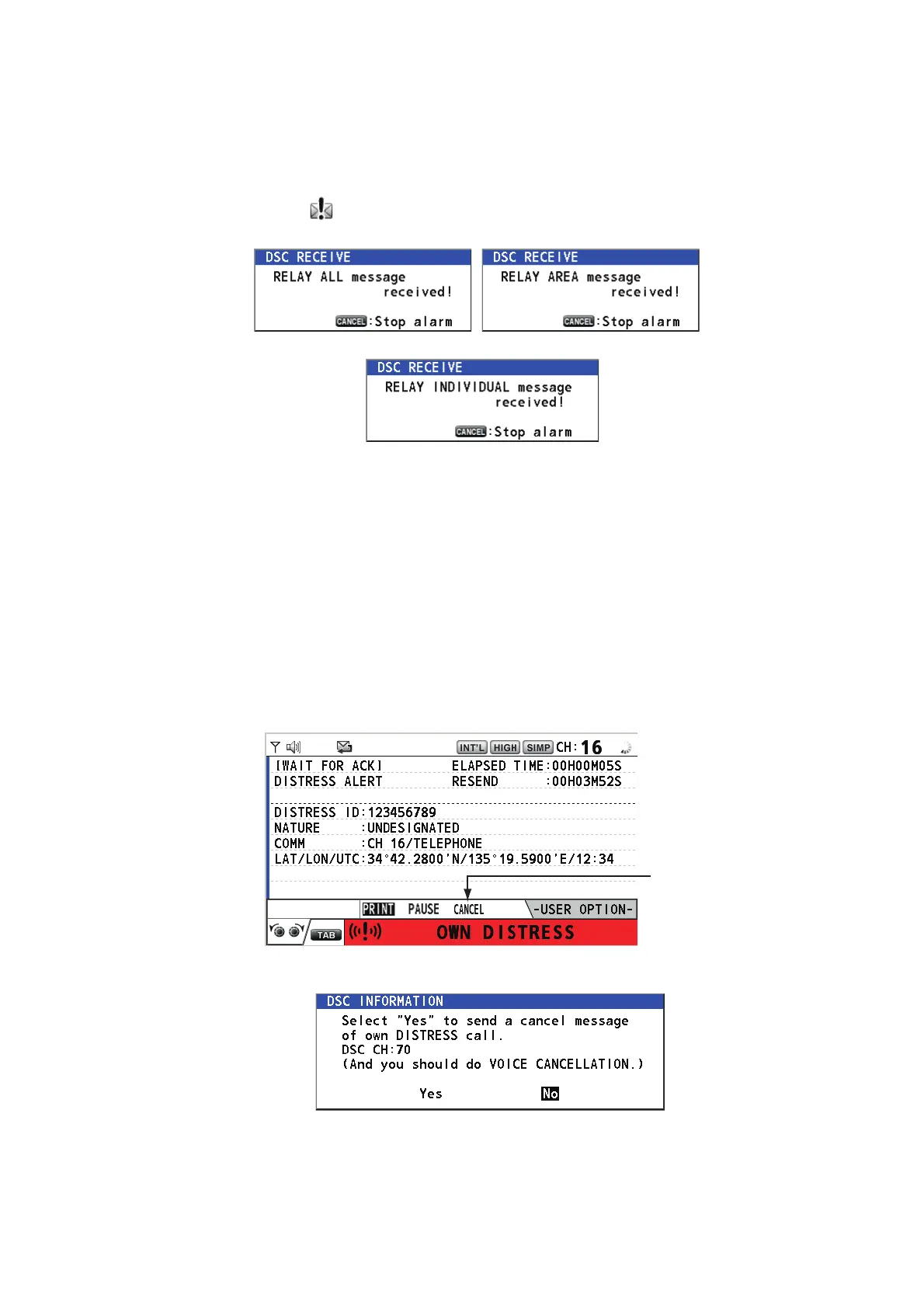 message, continue monitoring CH16. The audio alarm sounds and the LED flashes in