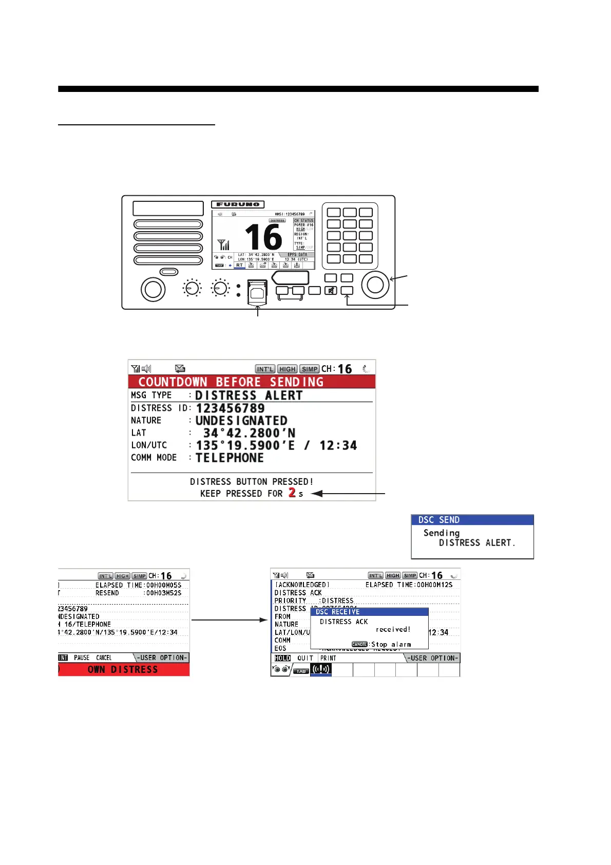 Below is the procedure for transmitting a distress alert via radiotelephone. Transmit the distress