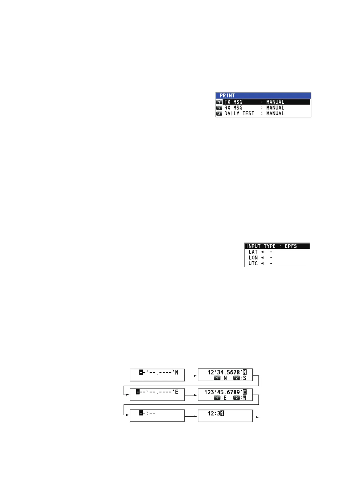6. For manual input, use the numeric keys to enter current latitude/longitude posi-
