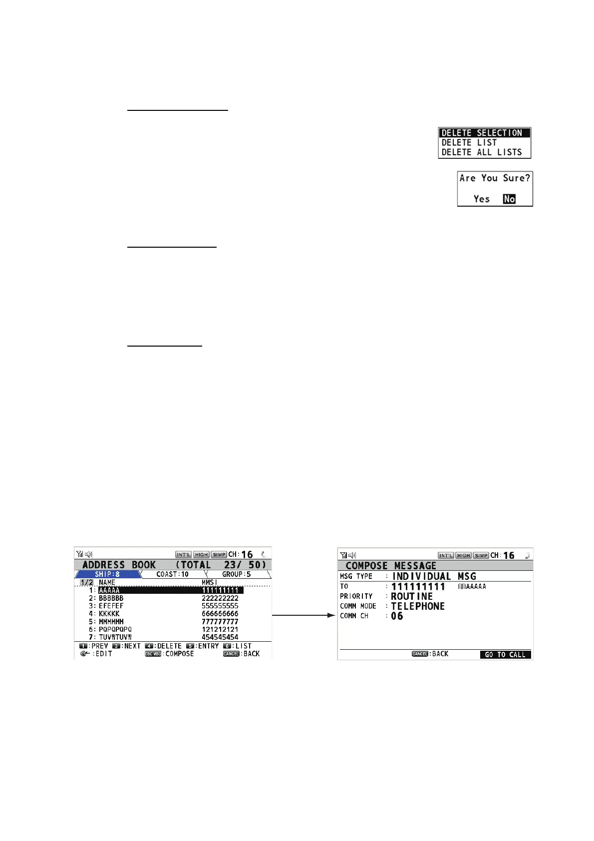 For the address type [SHIP] or [COAST], [MSG TYPE] is [INDIVIDUAL MSG]. For
