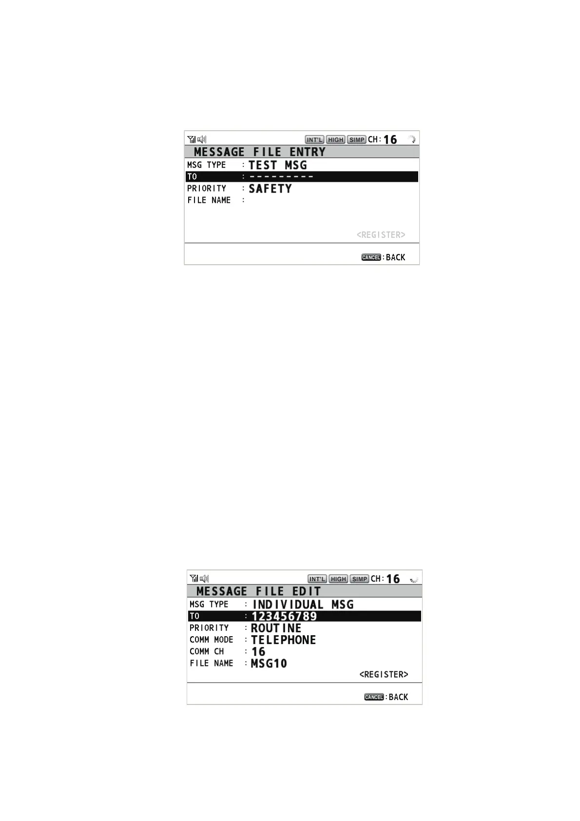 3. Push the CHANNEL/ENTER knob to open the [MESSAGE FILE EDIT] screen.