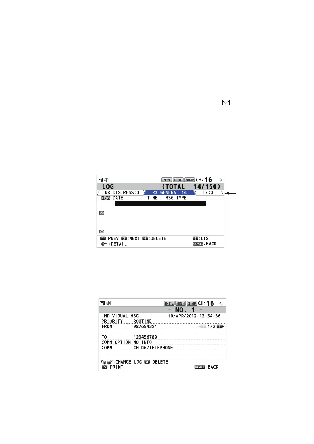 3. Press the 6 key to switch the log file mode in the sequence of [RX DISTRESS]