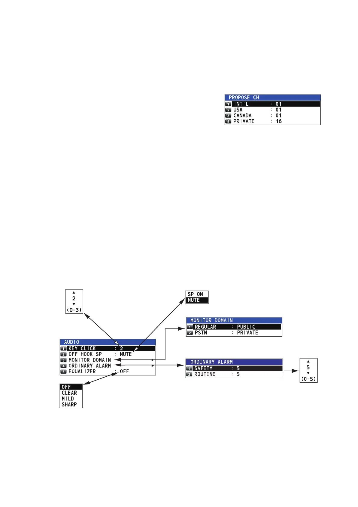 • Key click on (setting: [1] - [3]) or off (setting: [0]) (Two beeps sound when a key in-