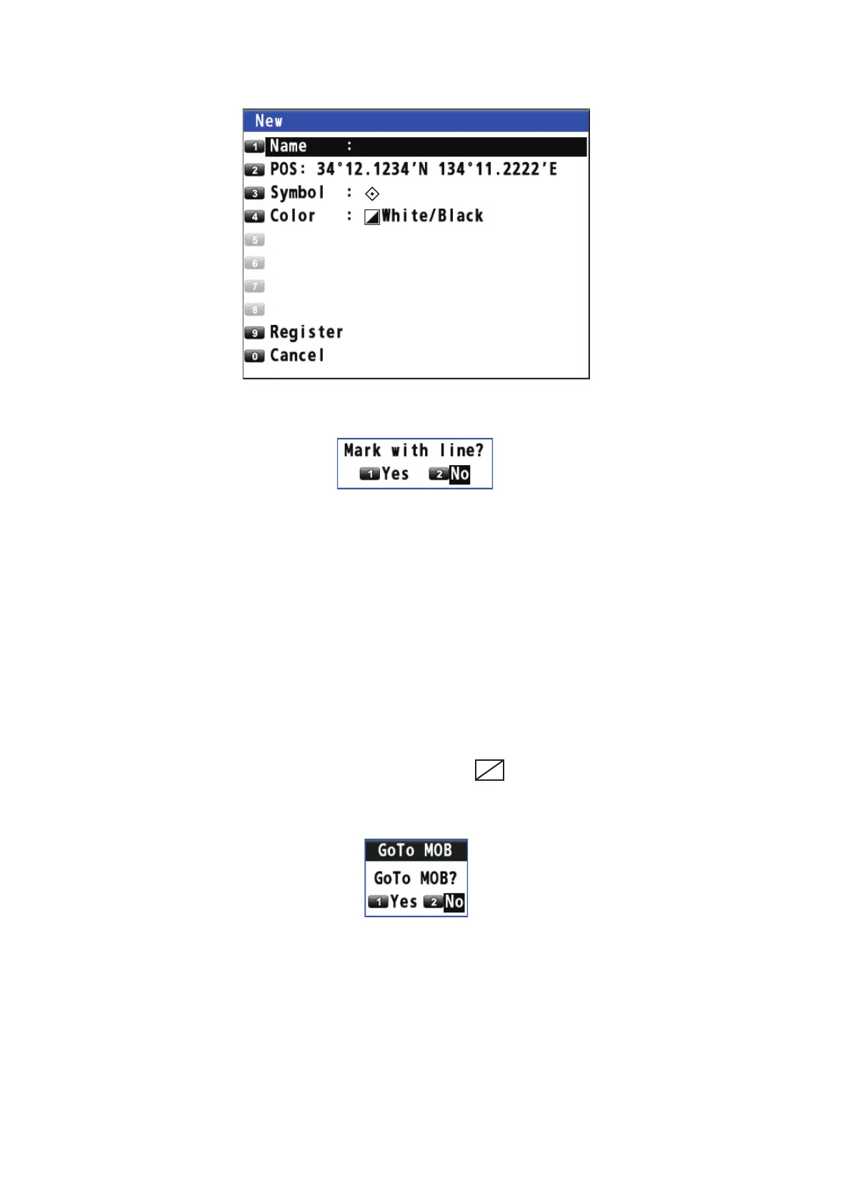 Select [1 Yes]. The position for the MOB mark becomes the destination. A line is