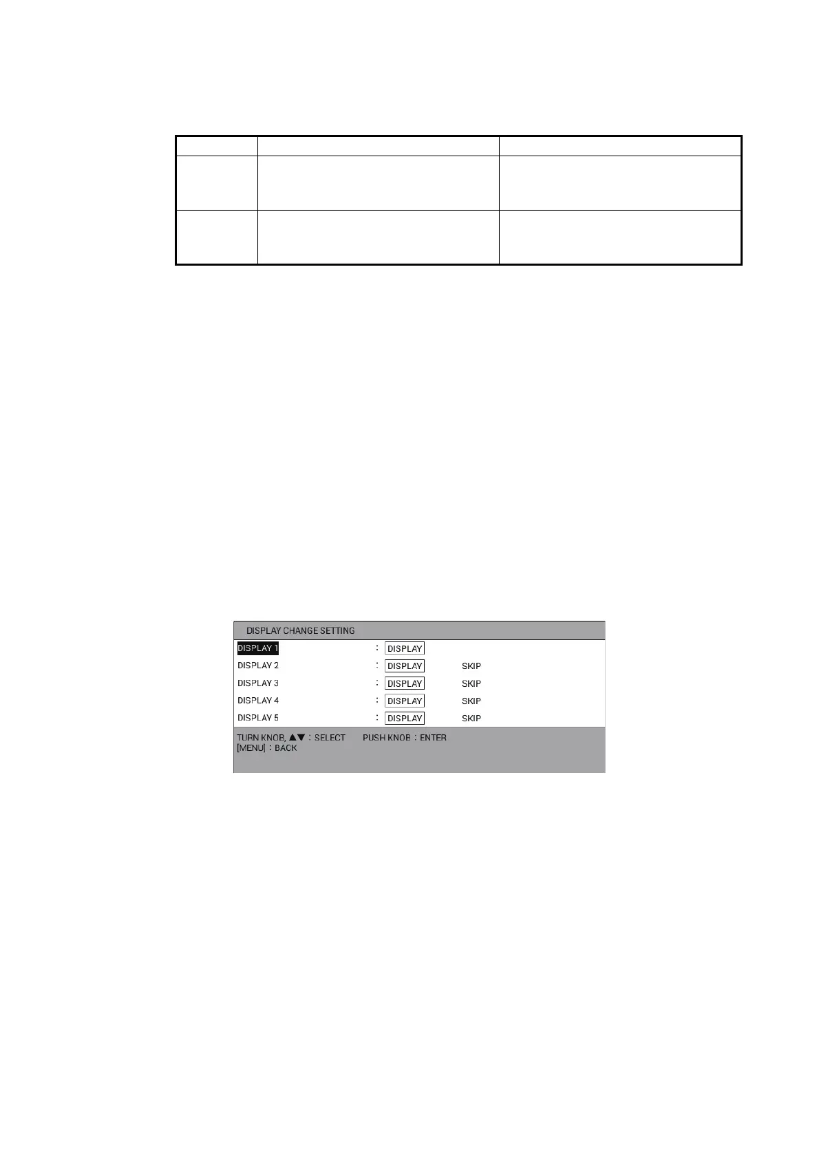 6. Select [DISPLAY] or [SKIP]. The displays which are set to [SKIP] are skipped
