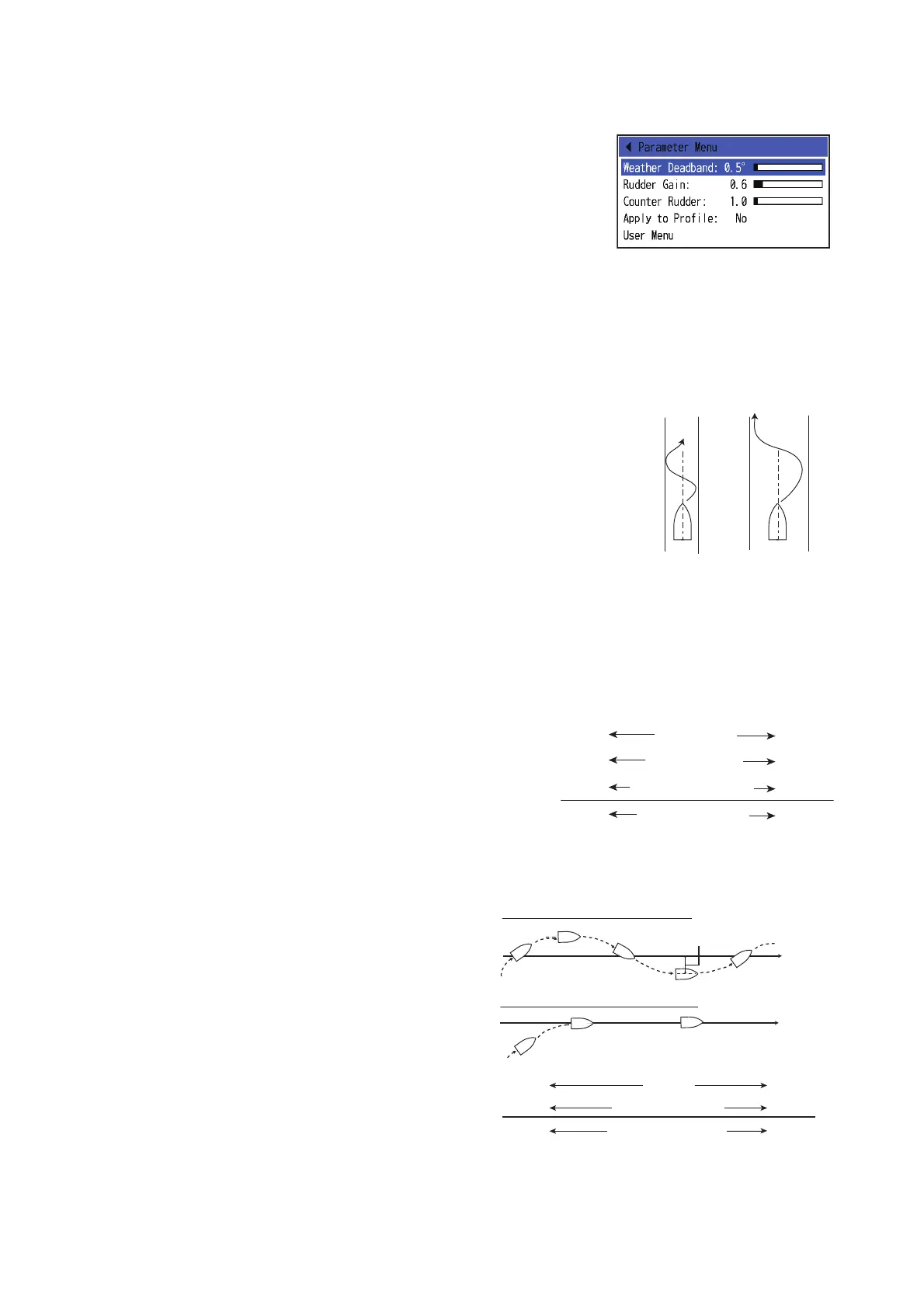 with weather deadband setting 3° and 7°. When 7° is set, for example, the steering