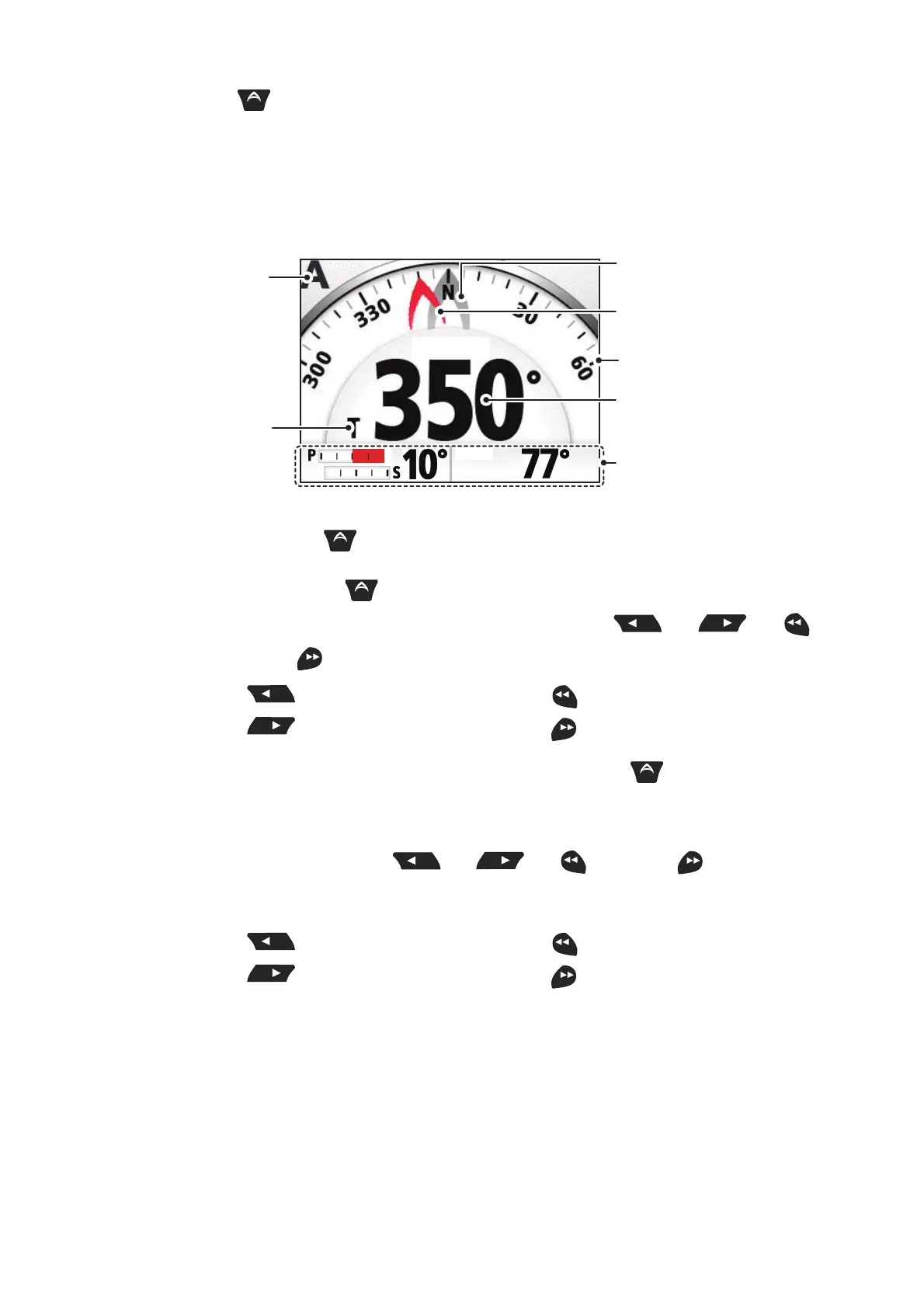 コンパス目盛、船首方位マーカー、および設定針路マーカーは、表示モードの
