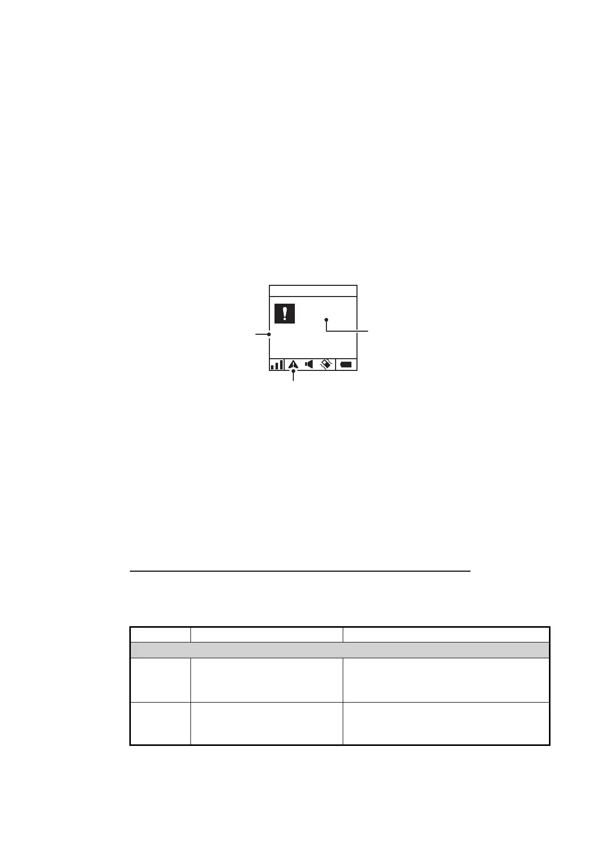 次のようなときに、画面上に警報アイコンと警報メッセージが現れます。