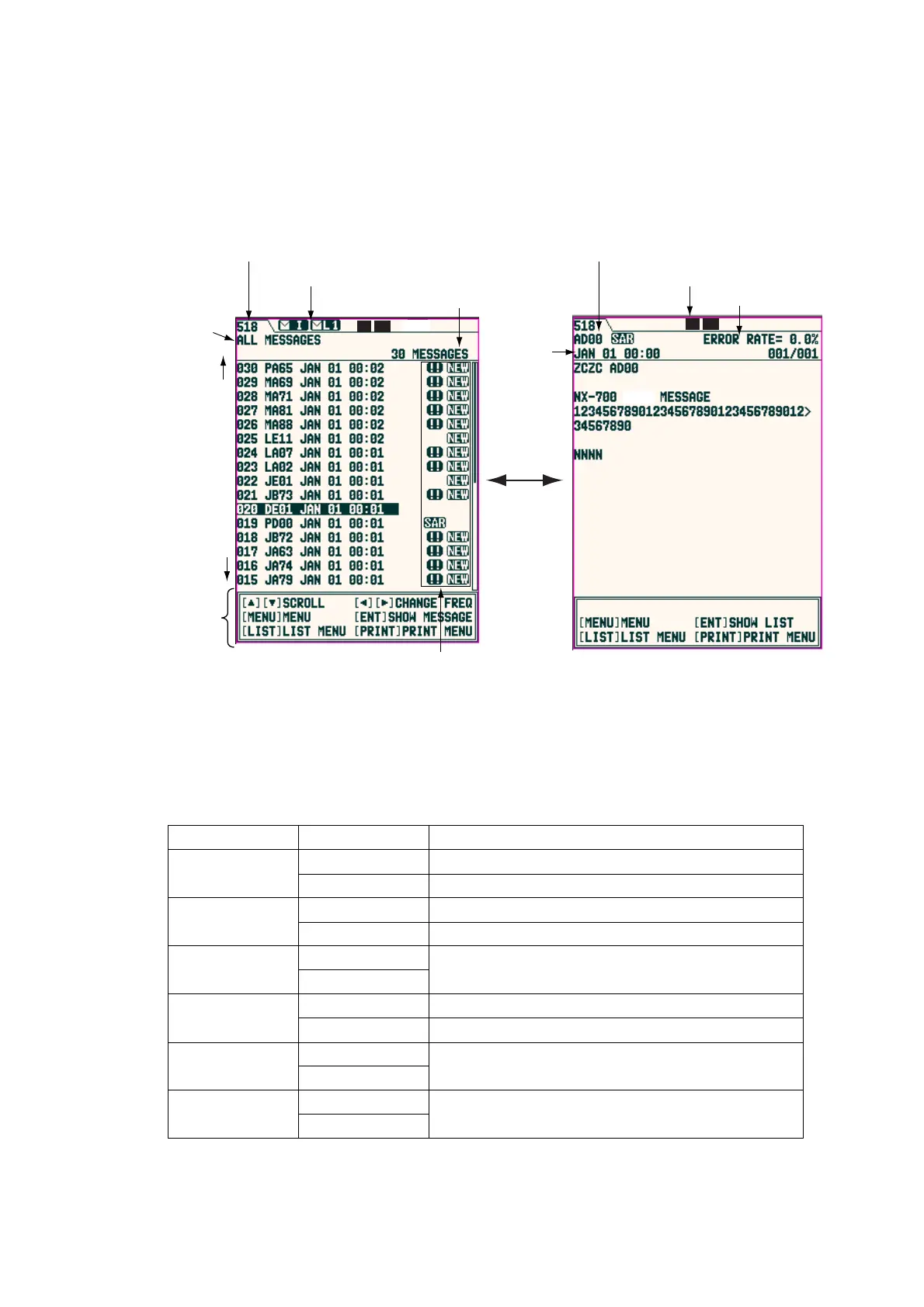 detailed message displays can be switched by pressing the ENT key.