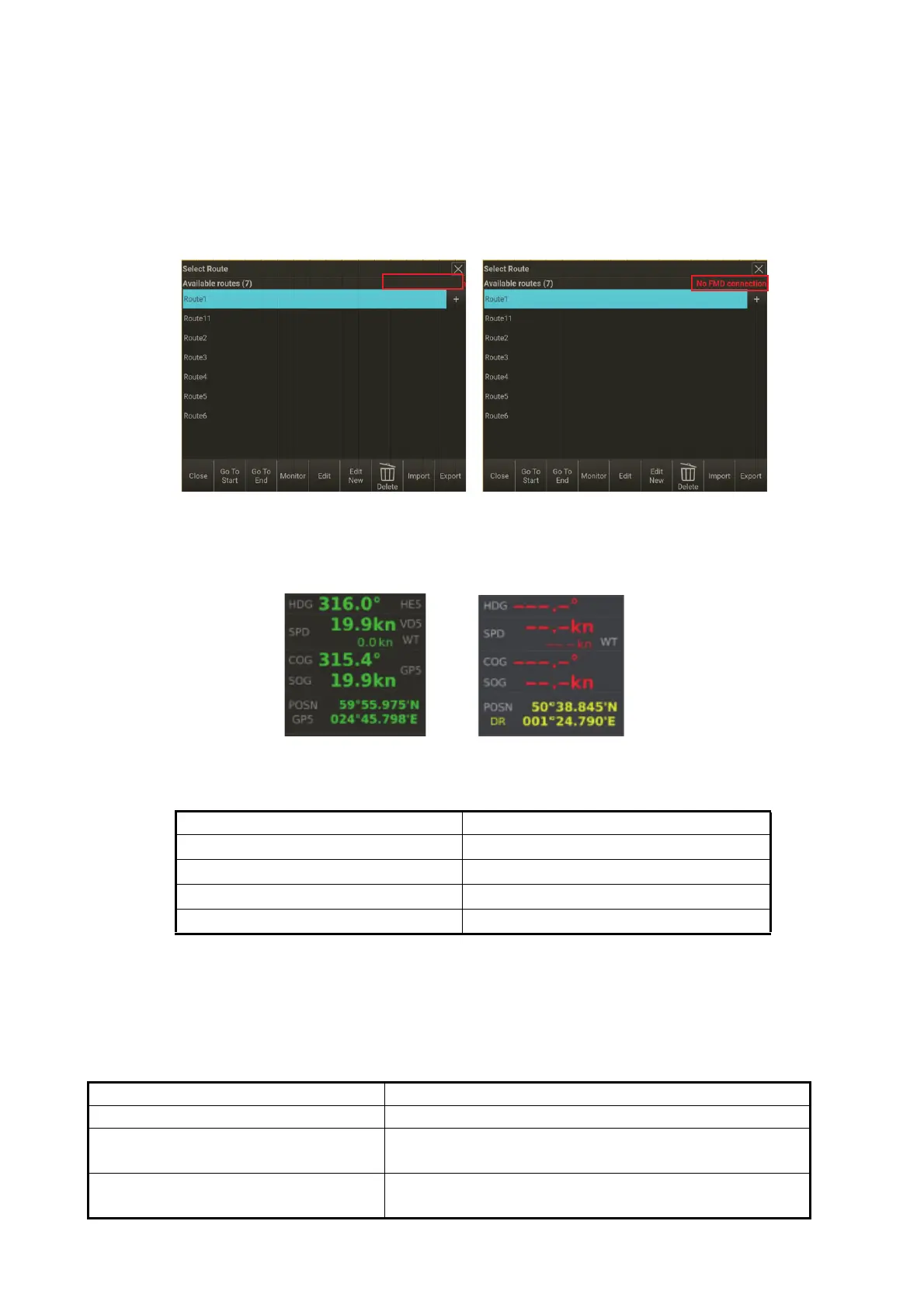 FMD-3xxx (No.1 ECDIS) への接続を確認してください。