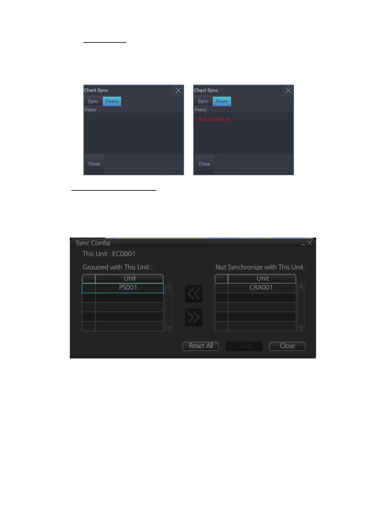 本機、ECDIS、またはチャートレーダーと同期する機器を選びます。下図に示すよ