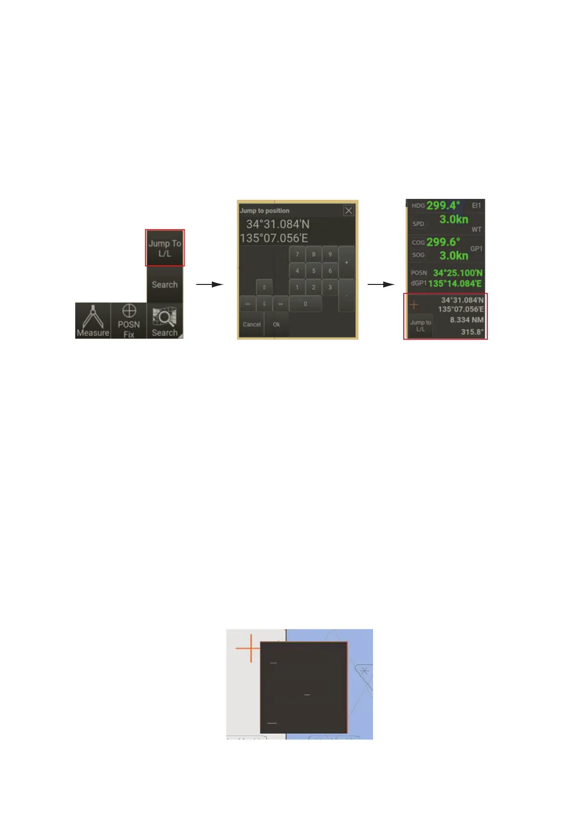 離、および方位が表示されます。[Jump To L/L] をタップすると、[Jump to position]