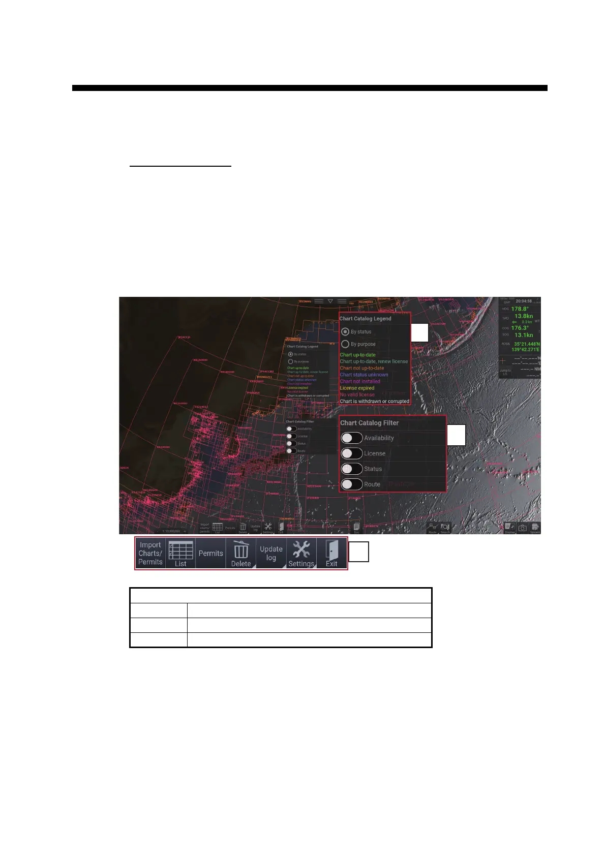チャート管理モードは、本機に関するすべてのチャートデータベース管理機能を備