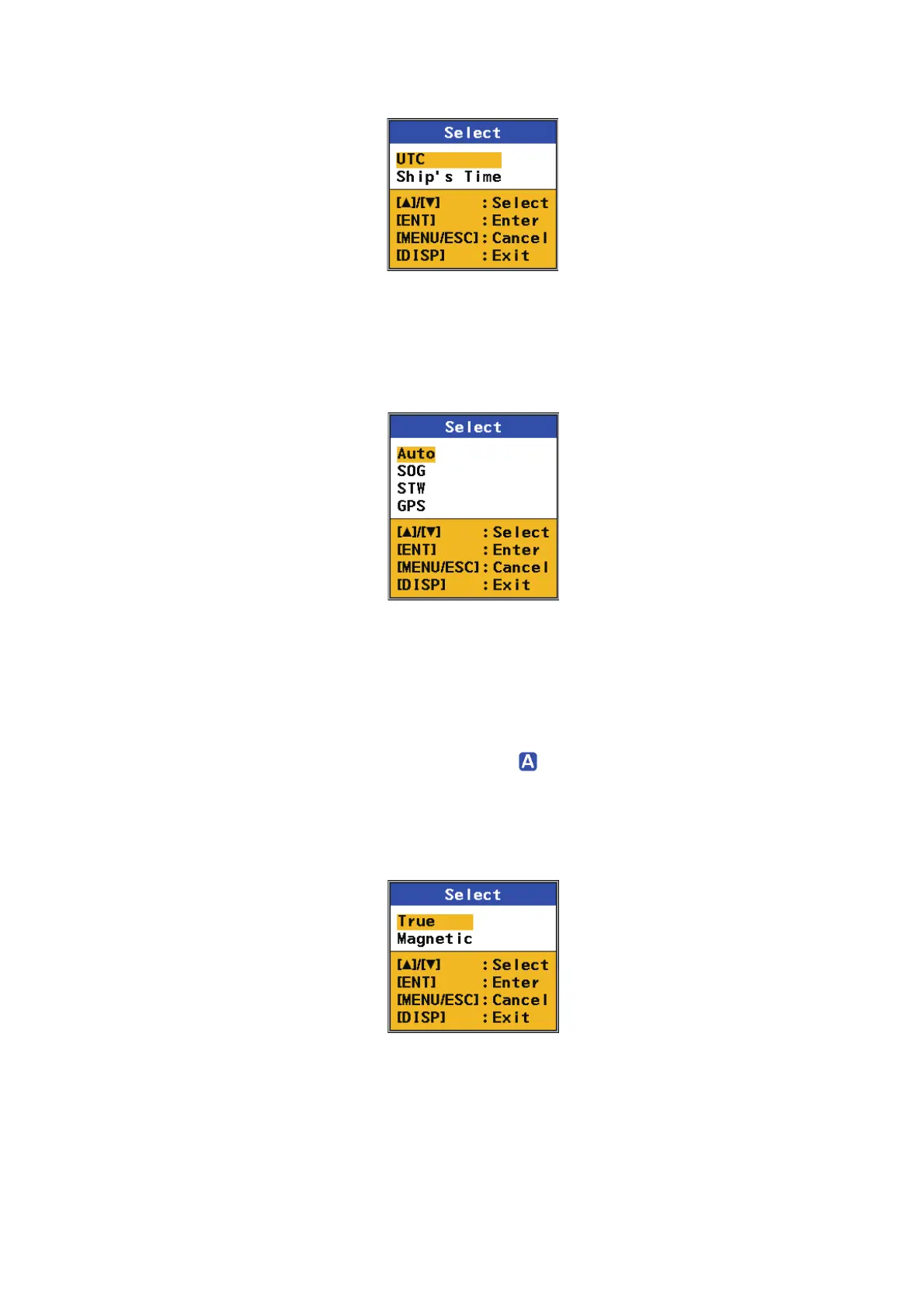 6. Press S or T key to select [UTC] or [Ship’s Time] then press the ENT key.