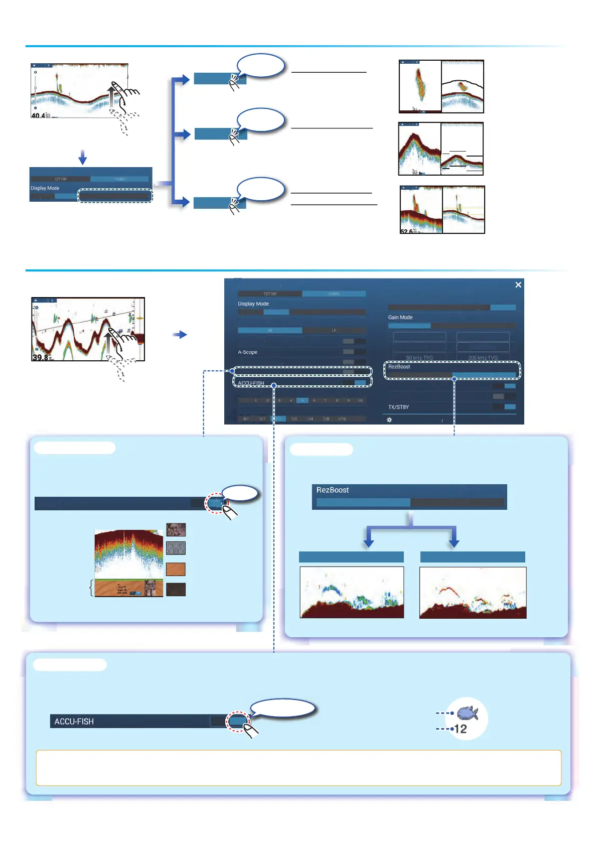 Τα ψάρια που εντοπίζονται μπορούν να σημειωθούν με ένα σύμβολο ψαριού (απαιτείται μετατροπέας με δυνατότητα