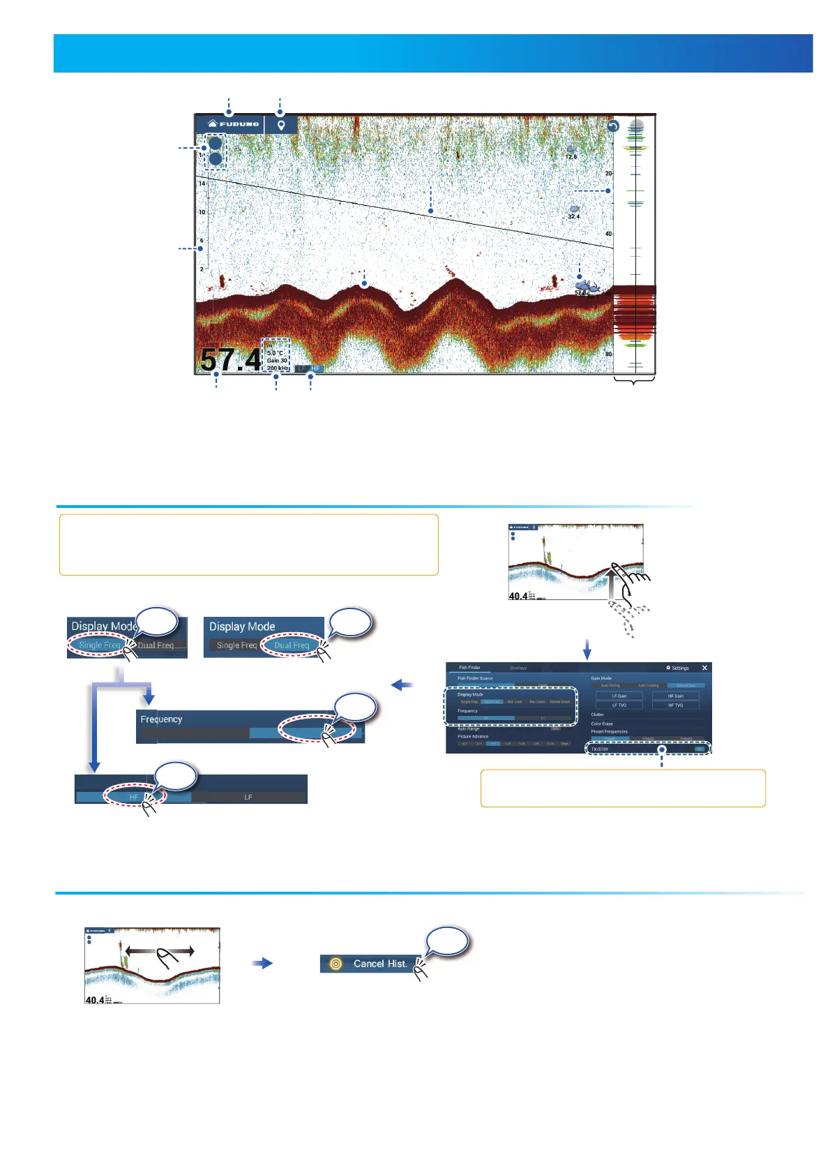 High (Middle) frequency: For detailed observation of schools of fish.