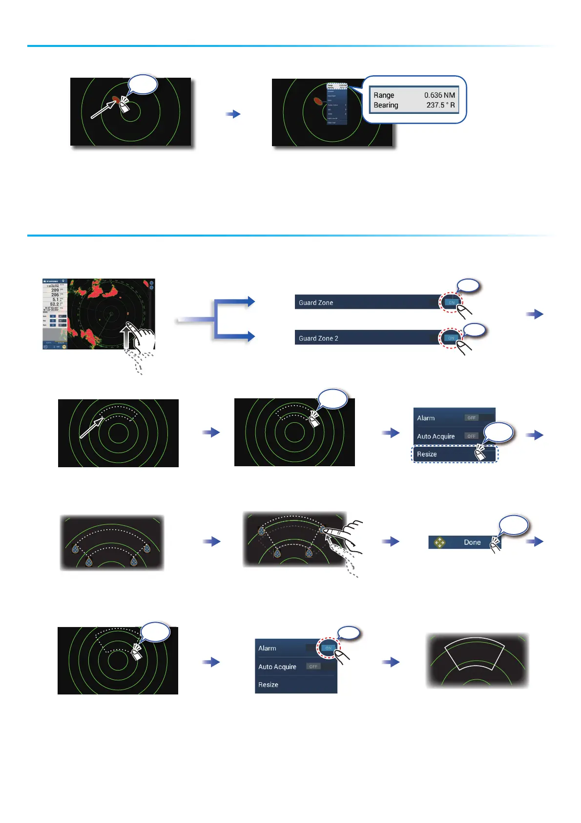 A guard zone alerts you (with aural and visual alarms) when a radar target enters the area you