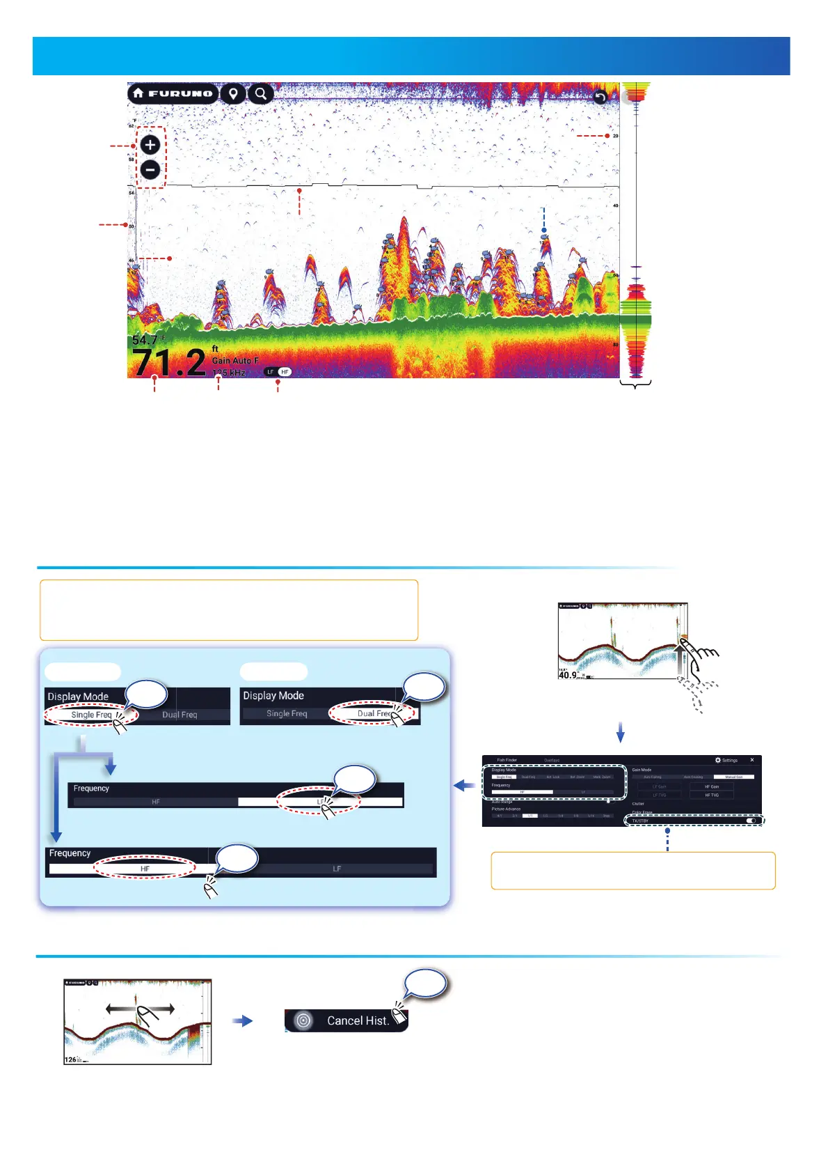 *³: For full screen, you can adjust the depth font size in Home page→[Settings]→[Fish Finder]→