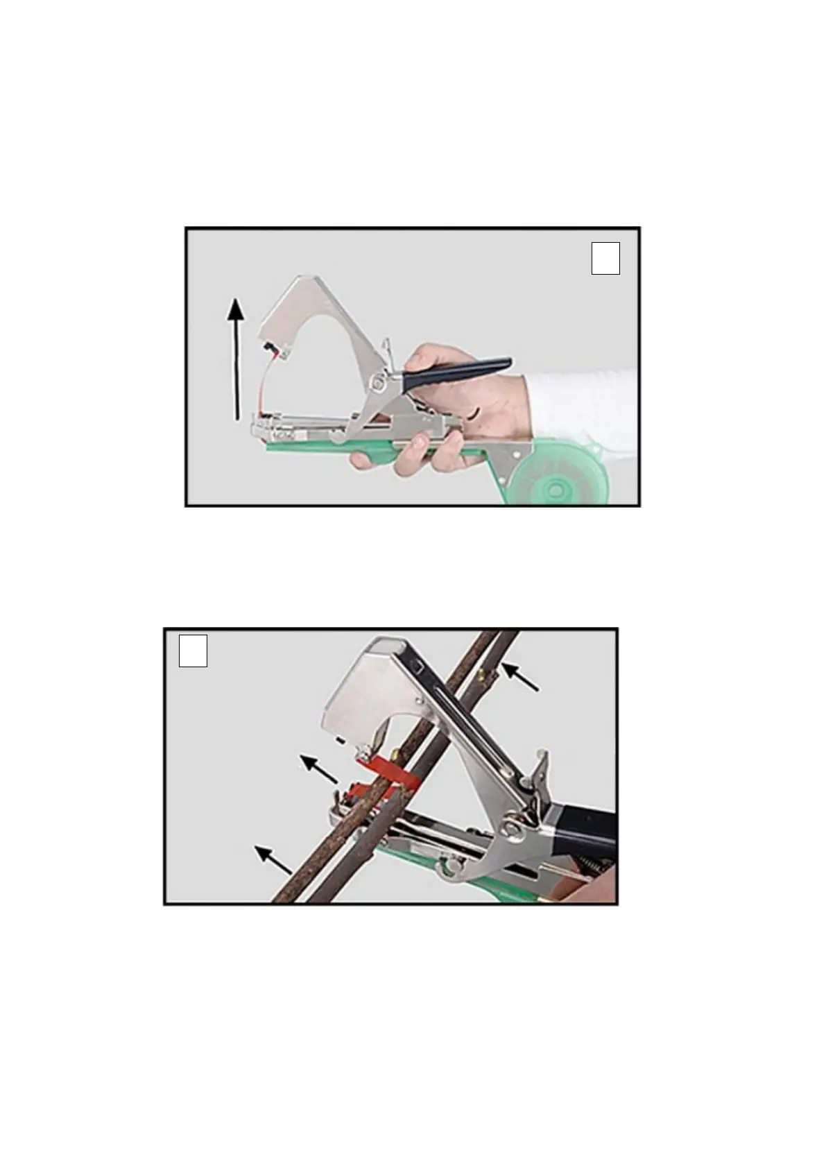 - Pour attacher les branches ensemble, tenez la pince à lier contre les branches comme indiqué sur la
