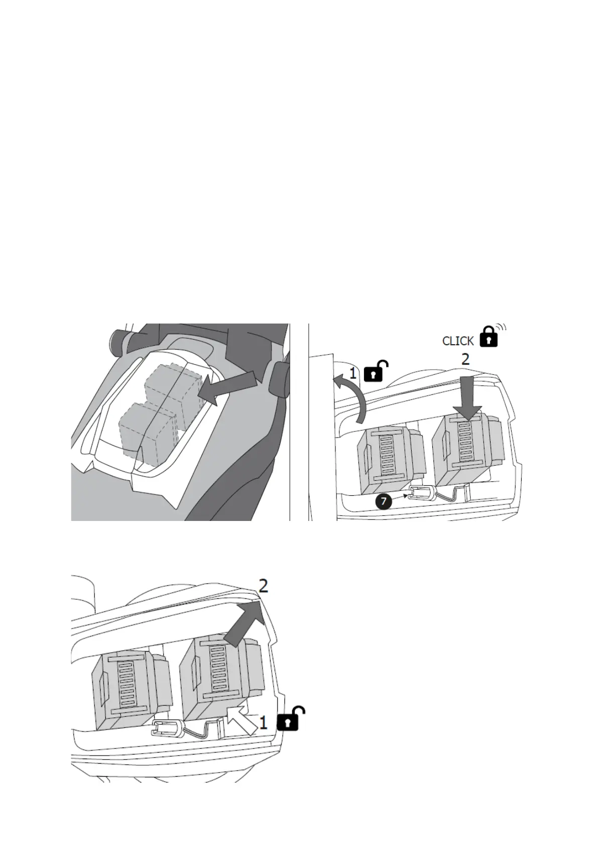 Insert the batteries into the rails provided. Then insert the safety key (marked with the number 7 in