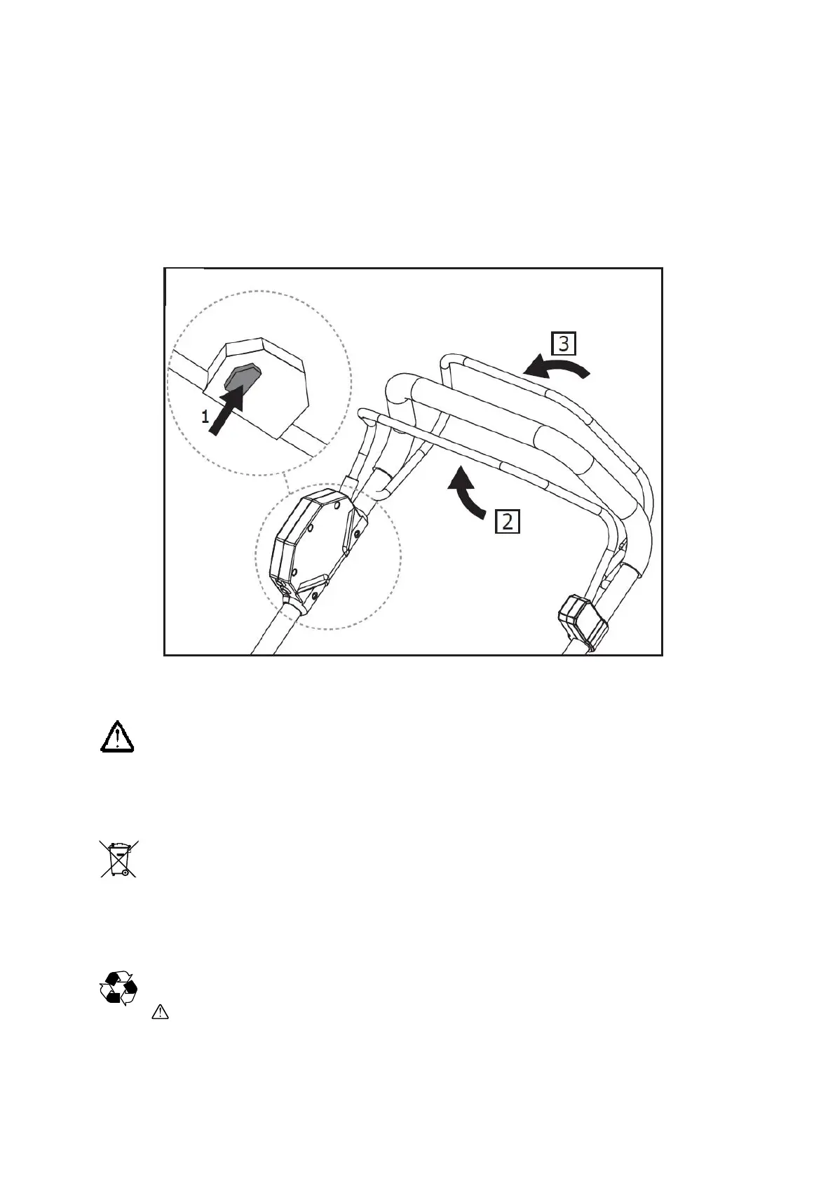 When the mower is switched on, all you have to do is press the rear lever on the top bar against the