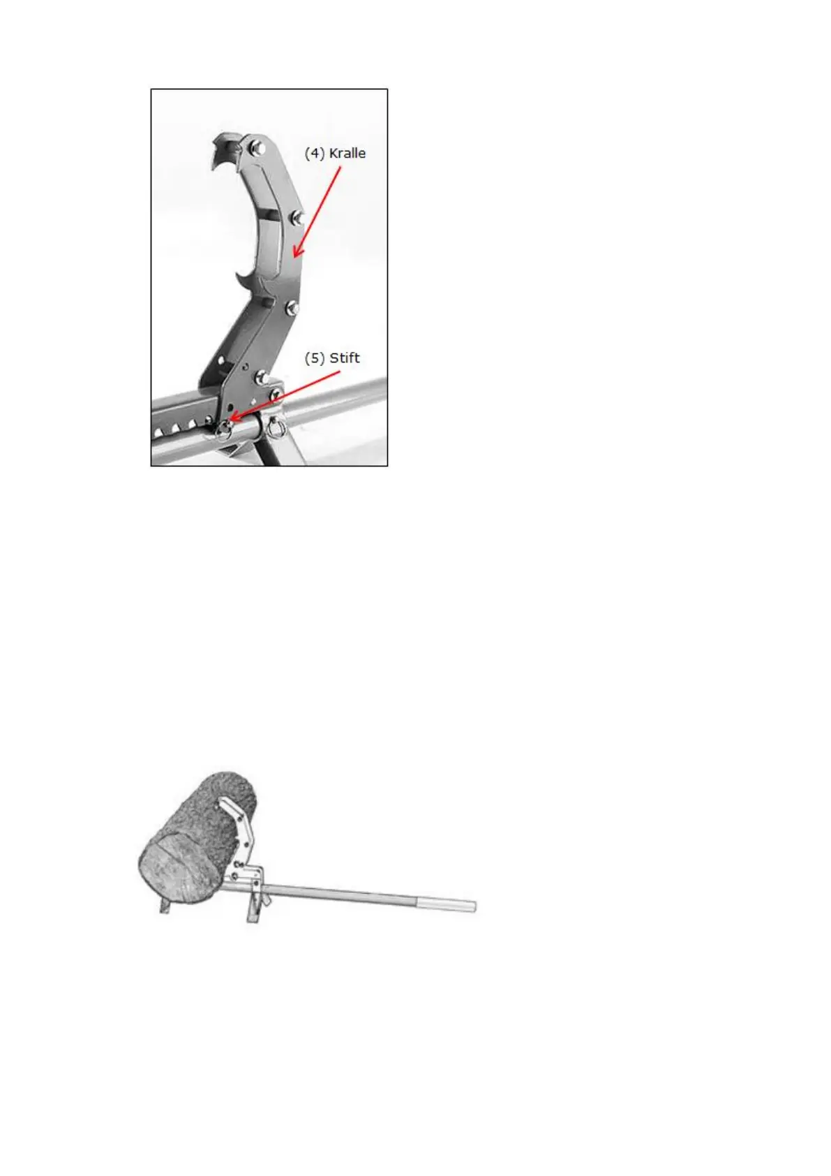 4. Inserire la maniglia attraverso i piedini e fissarla con un perno di rilascio