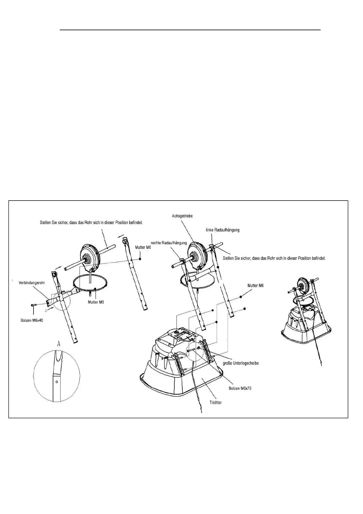 • Angebautes Stützbein mit Radaufhängung und Trichter mit Schrauben M6X70, Mutter