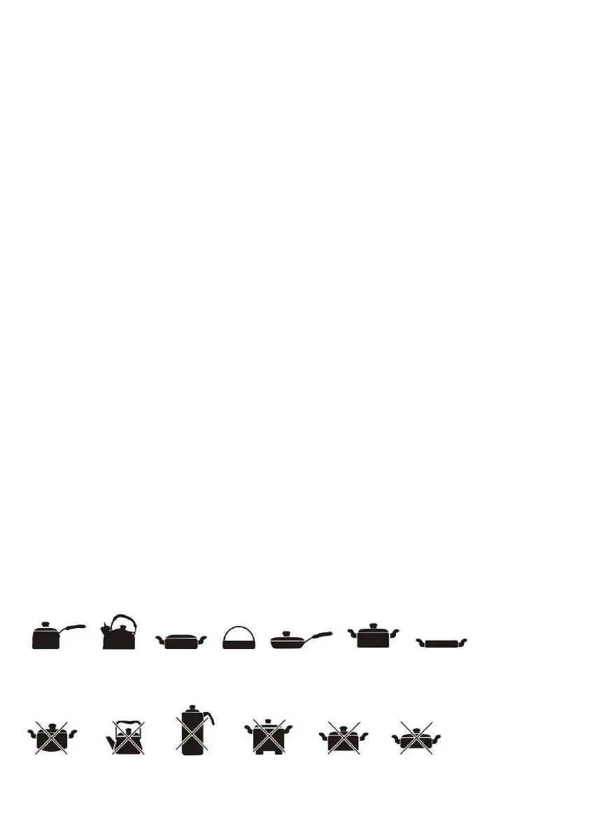 NÃO UTILIZÁVEL COM CAÇAROLAS, FRIGIDEIRAS OU TACHOS: De cobre, de vidro, de