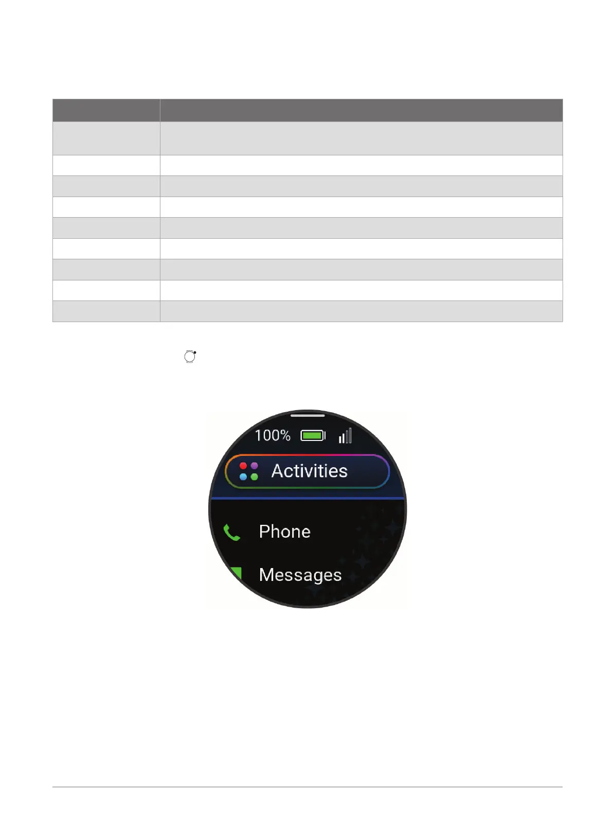 Druk vanaf de wijzerplaat op . Selecteer Activiteiten en veeg omhoog om door de activiteiten te bladeren.