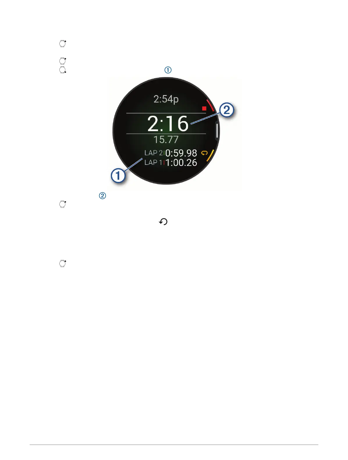 4 Druk op om de rondetimer opnieuw te starten .