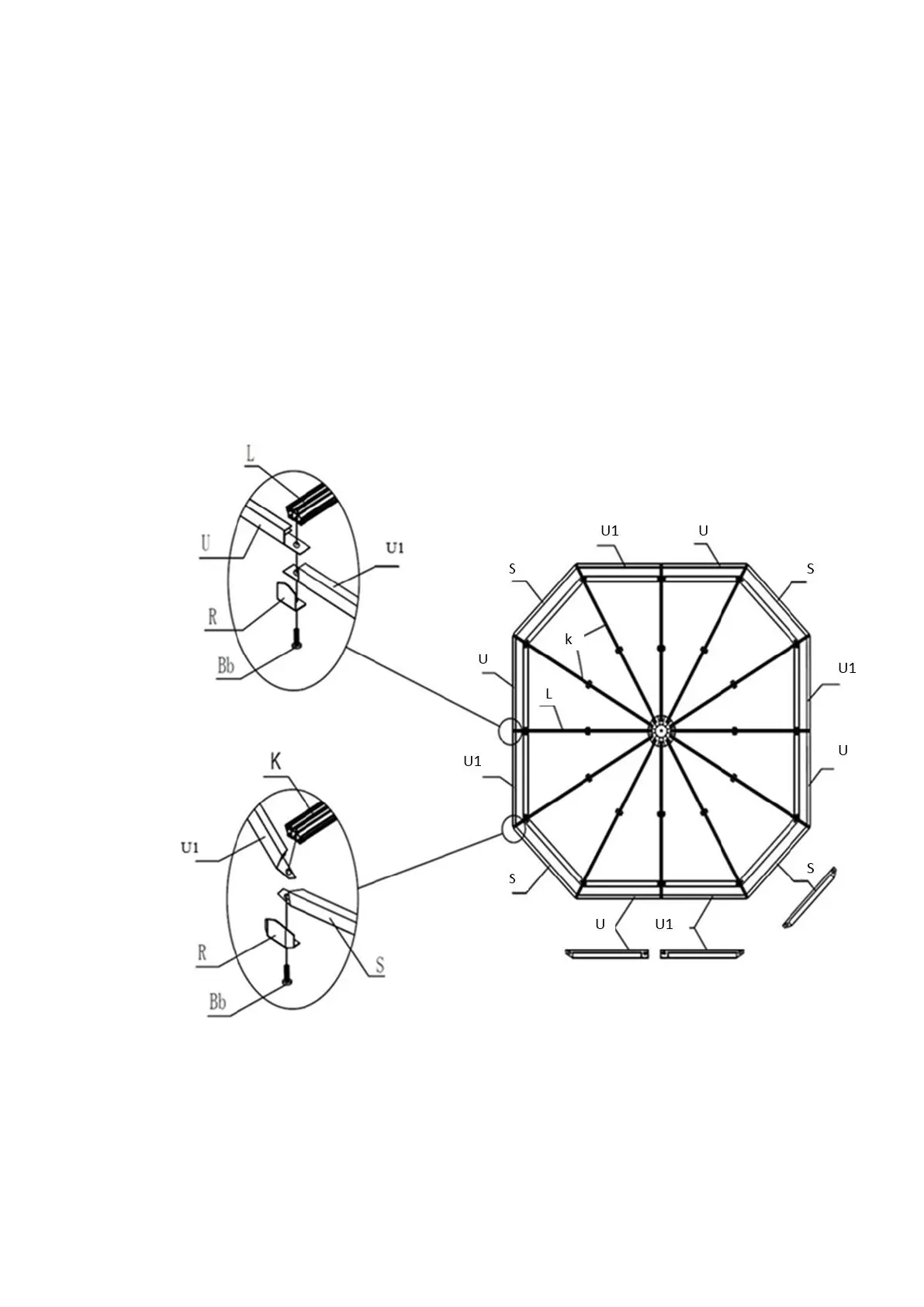 1. Now secure the sides of the roof with Finishing Bar (S, U, and U1) with Bolts (Bb) and