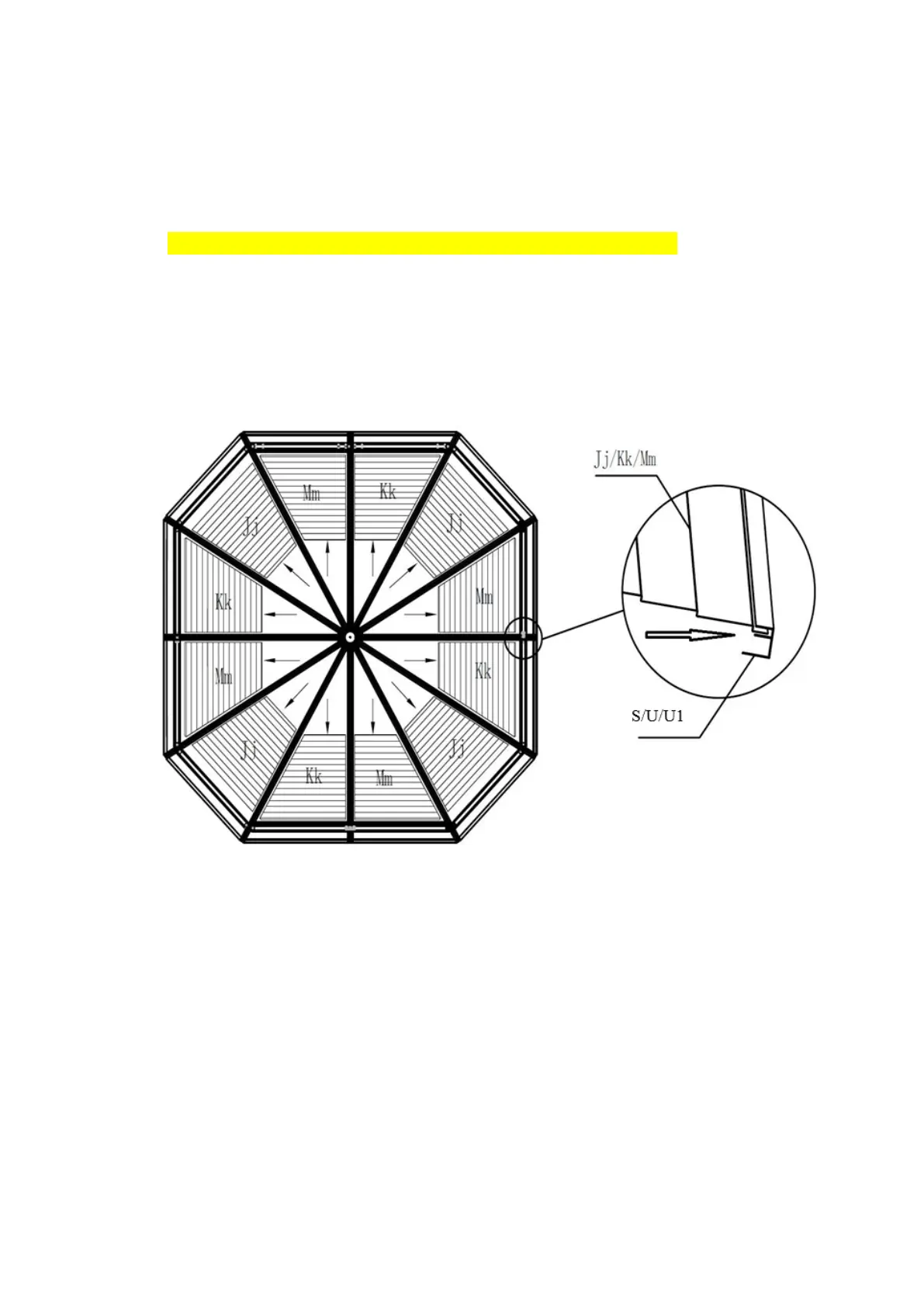 1. Install the bottom Roof Panels (Jj, Kk, and Mm) by sliding them onto Finishing Bar (S, U,